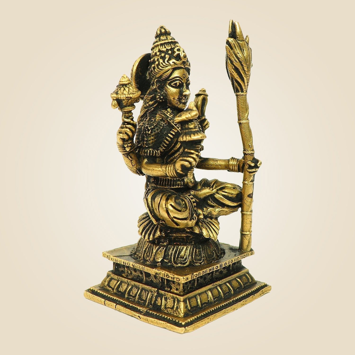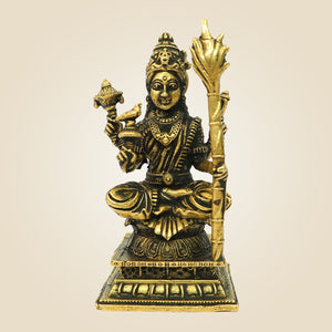 The 3.25" Goddess Kamakshi Bronze Idol, also revered as Tripura Sundari Murti or Lalita Devi, is a finely crafted piece symbolizing divine feminine energy and grace. Meticulously cast from bronze, this idol offers durability and a timeless aesthetic. Ideal for personal altars or sacred spaces, it serves as an inspiring focal point for meditation and worship, embodying spiritual elegance in a compact form.