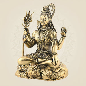 Home 3.75″ Lord Shiva Sitting Idol in Superfine Brass – Compact & Handcrafted