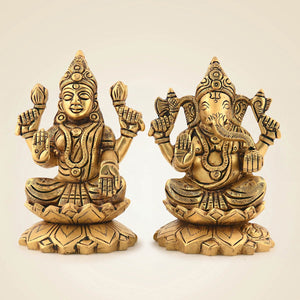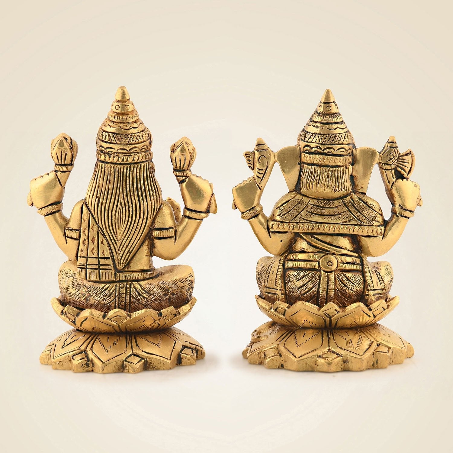 4" Brass Laxmi Ganesh Idol – Antique Design For Wealth and Blessings at Home