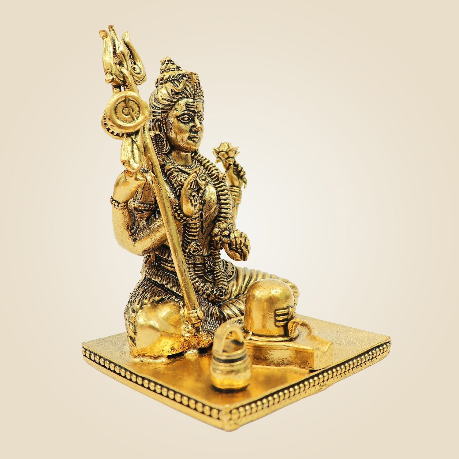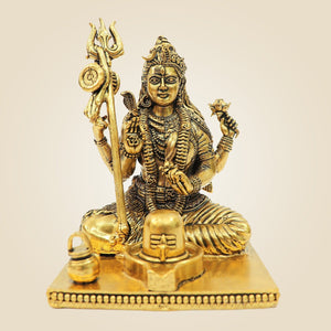 4.25" Brass Ardhanarishwar Idol with Shivling | Shiva Parvati Divine Statue for Temple Decor