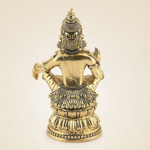 6" Ayyappa Swami Brass Idol – Handcrafted Lord Ayyappa Murti for Temple & Pooja Decor