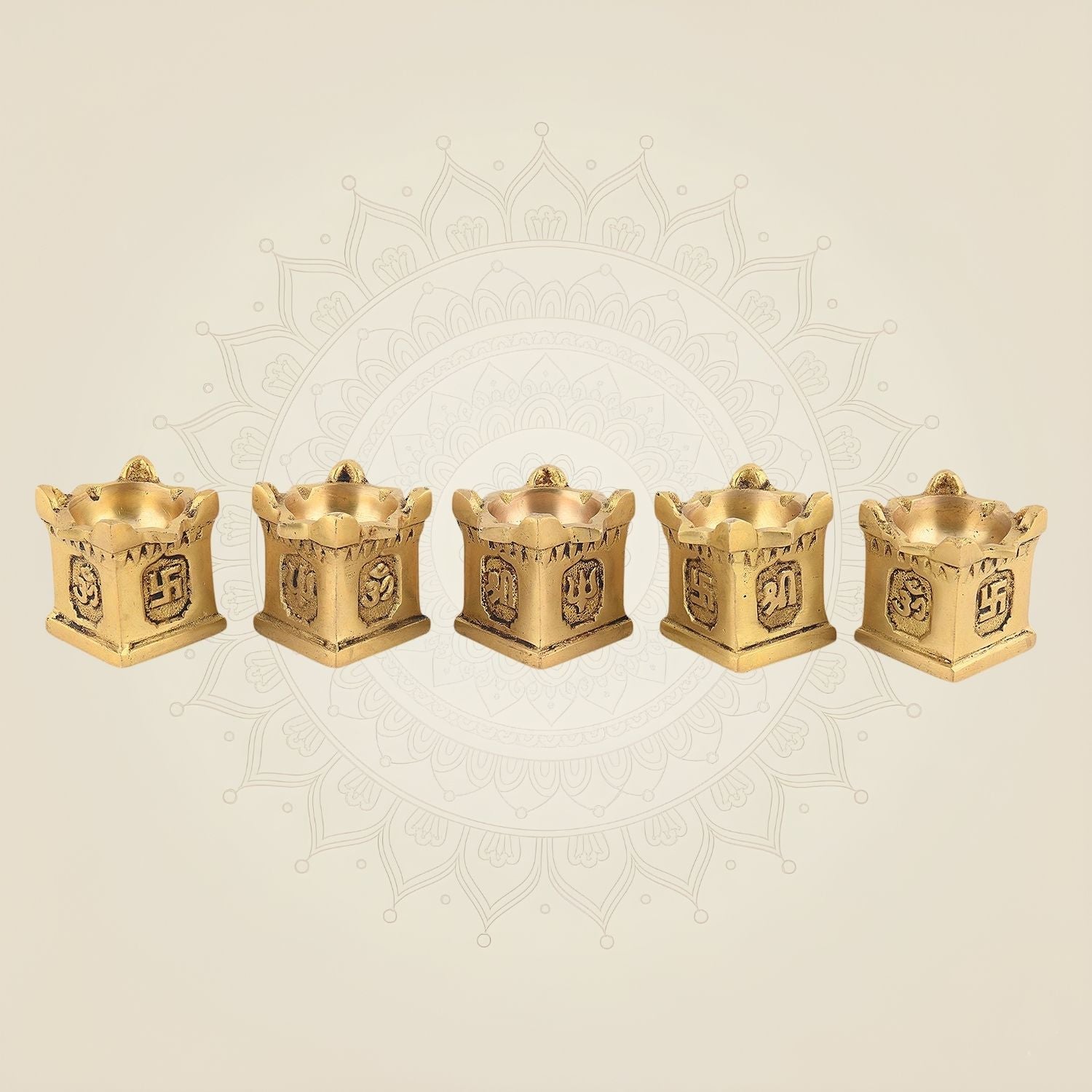 2" Brass Tulsi Chaura Set of 5 – Handcrafted Miniature Stand