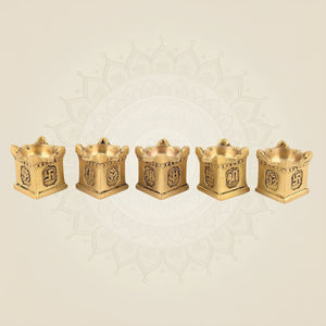 This set of five handcrafted 2-inch brass Tulsi Chaura miniature stands combines traditional craftsmanship with durable materials. Perfectly sized for small sacred plants, these stands offer a stable, elegant base that honors the spiritual significance of Tulsi. Each piece’s fine detailing reflects expert artisanship, making them ideal for both personal altars and decorative displays.