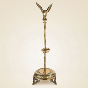Illuminate your sacred space with the 24" Brass Parrot Diya, expertly crafted with a lustrous gold finish. This long-chain deepak not only adds a traditional charm to temple and pooja decor but also offers durability and elegance. Its detailed design featuring a parrot motif enhances devotional ambiance while ensuring a steady, safe flame during rituals. Perfect for those who appreciate both artistry and spiritual significance in their worship accessories.