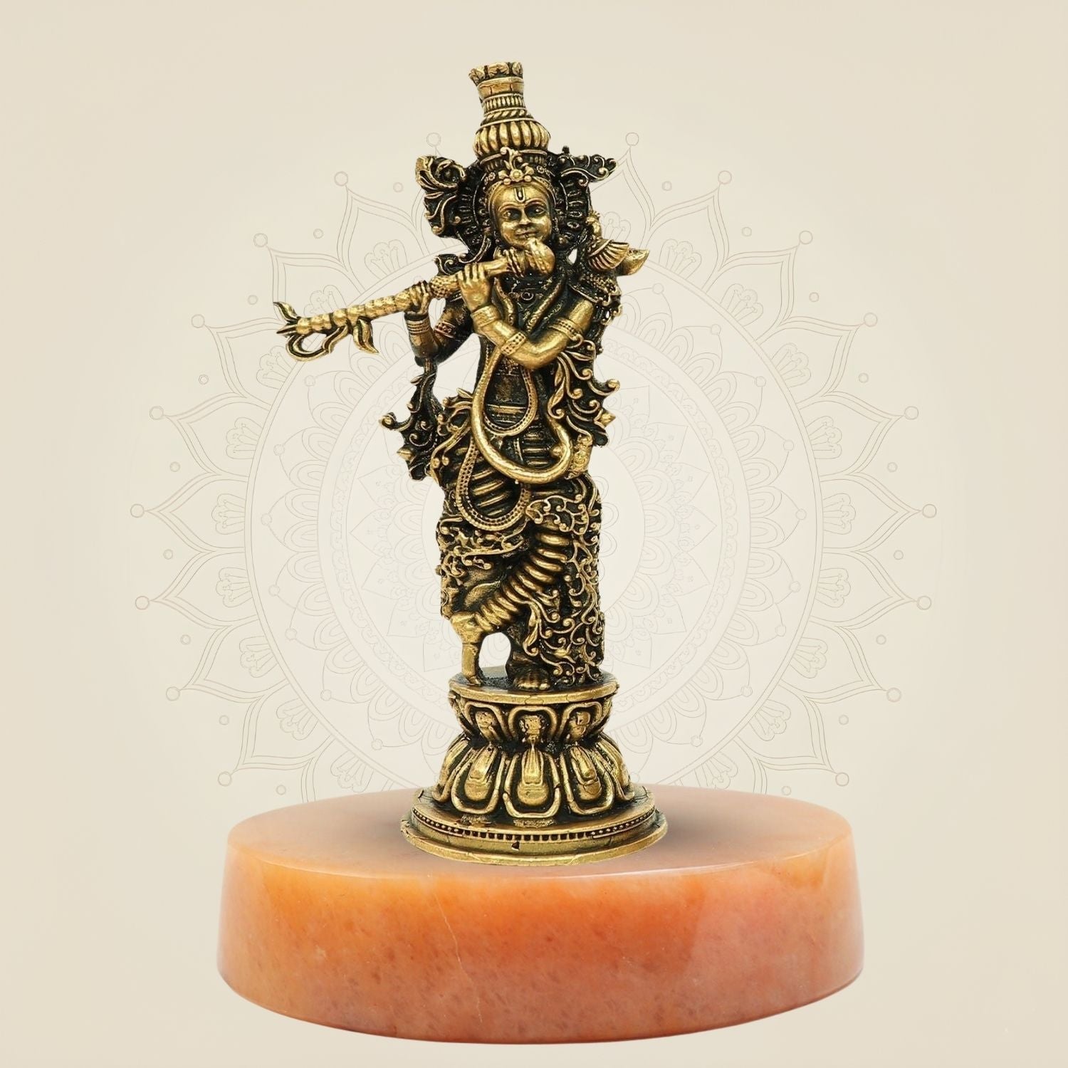 4.75" Krishna Bronze Idol – South Indian Divine Murti for Mandir