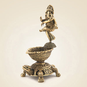 4" Brass Diya with Dancing Ganesha – Spiritual Oil Lamp for Puja & Decor
