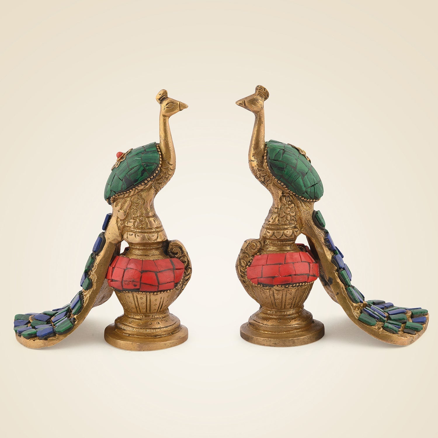 5.5" Brass Peacock Pair – Handcrafted Stone-Finish Decor Idol Set for Home & Gifts