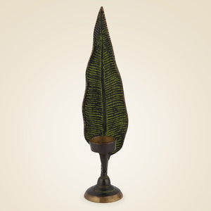Brass Leaf Candle Stand 12.75" - Antique Finish Handcrafted Decorative Item