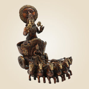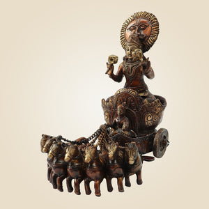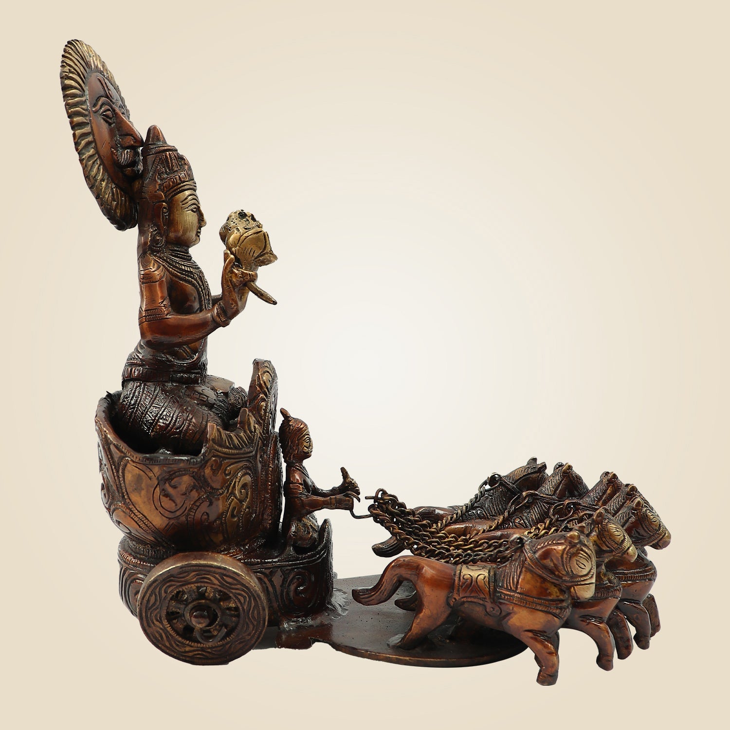 Exquisite Brass Surya Dev Rath Idol with 7 Horses 10.75" Inchs | Sacred Vedic Decor Statue