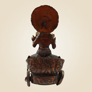 This exquisitely crafted brass Surya Dev Rath idol, standing 10.75 inches tall, showcases seven horses symbolizing the sun’s radiant energy in Vedic tradition. Designed with intricate detail, this sacred statue serves as both a spiritual centerpiece and a refined decorative element, embodying ancient artistry and symbolism. Ideal for enhancing meditation spaces or elevating your home altar, it connects you deeply with Vedic heritage and the divine energy of Surya Dev.