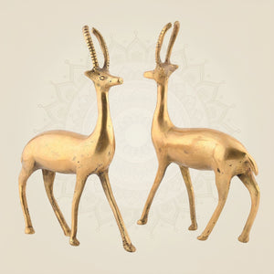 Pure Brass Deer Pair 9" – Handcrafted Animal Figurines for Home Decor & Vastu Display
