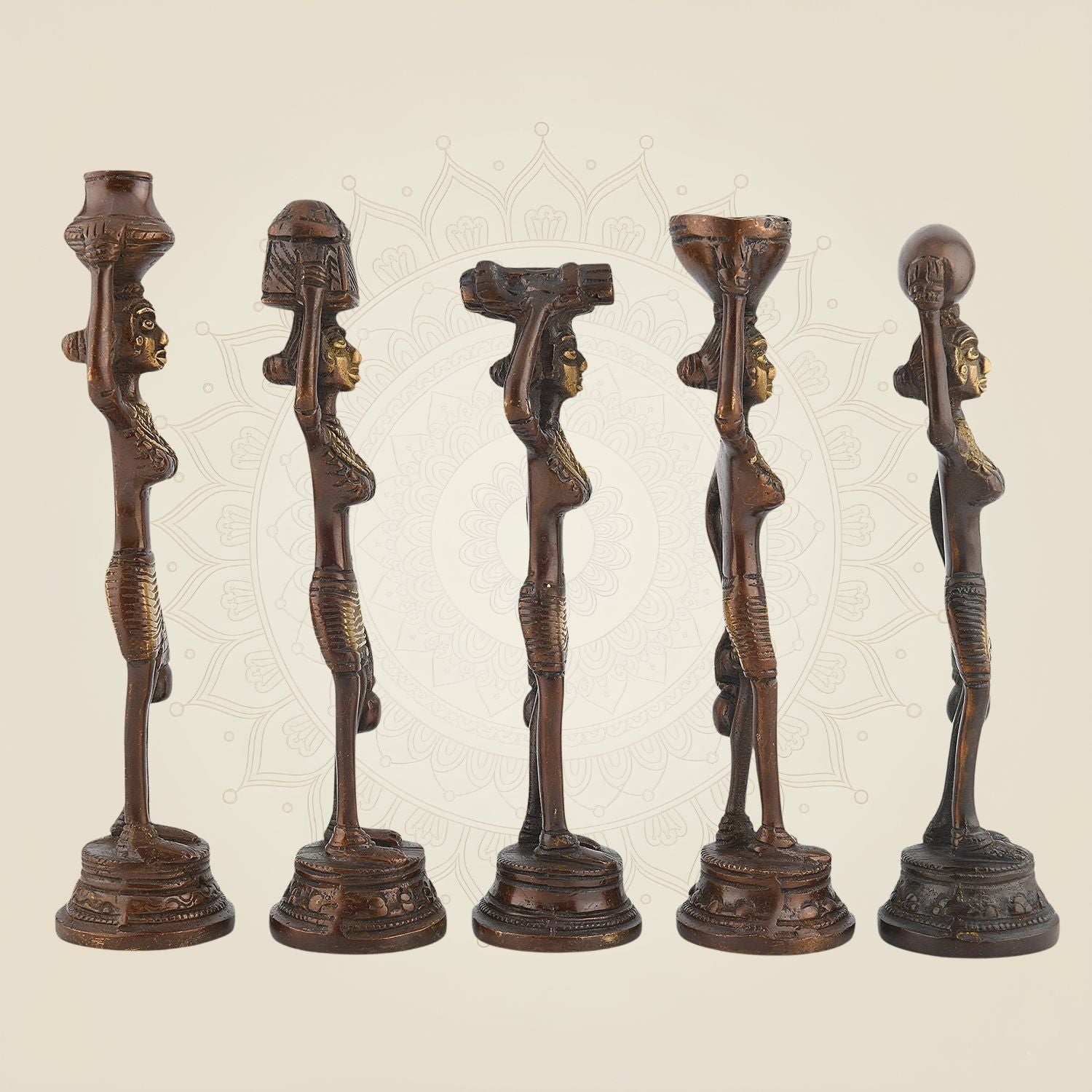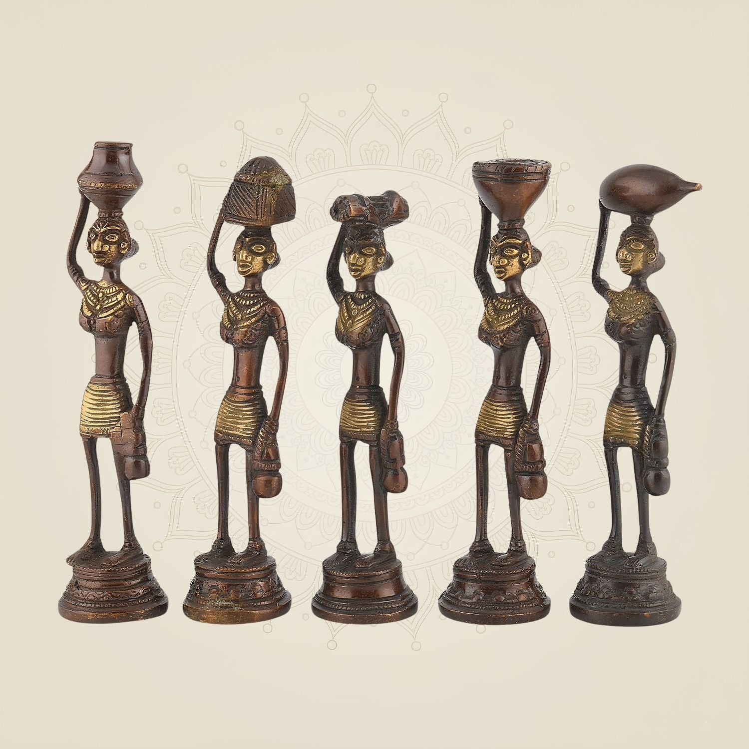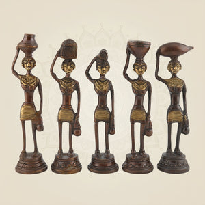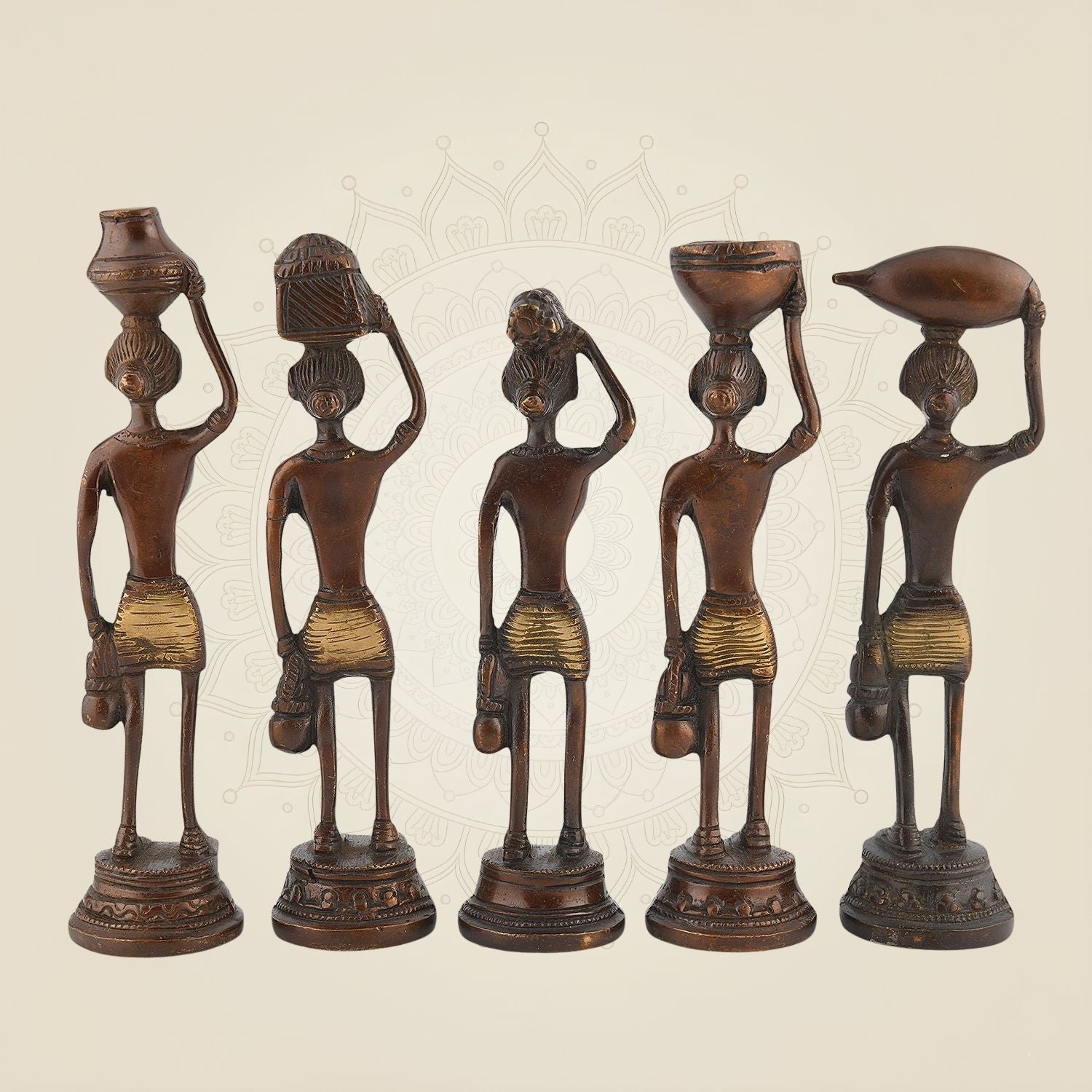 Pure Brass Tribal Ladies Sculpture – 7.5" Handcrafted Artisan Decor