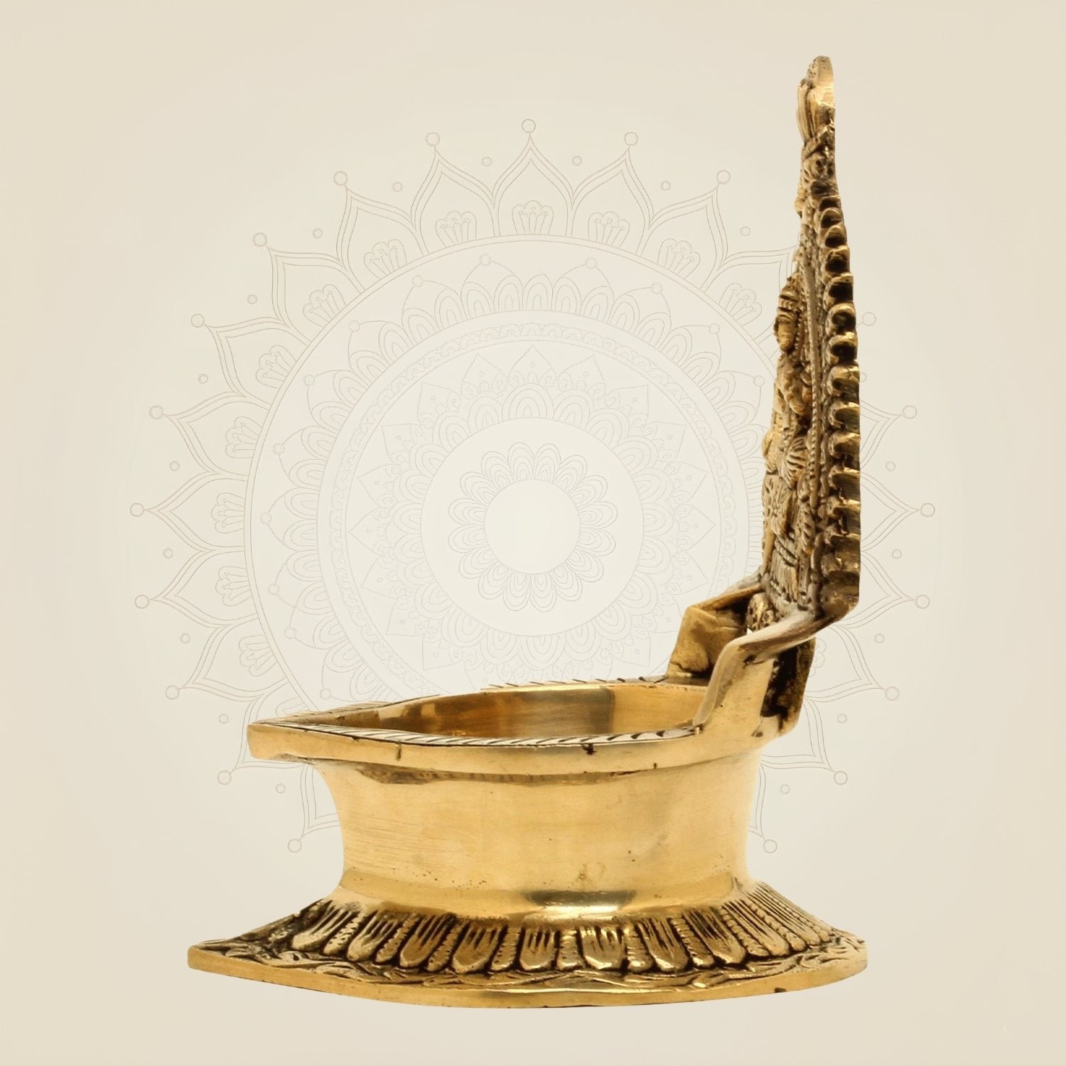 7" Handcrafted Brass Lakshmi Deepam – Traditional Pooja Oil Diya Decor
