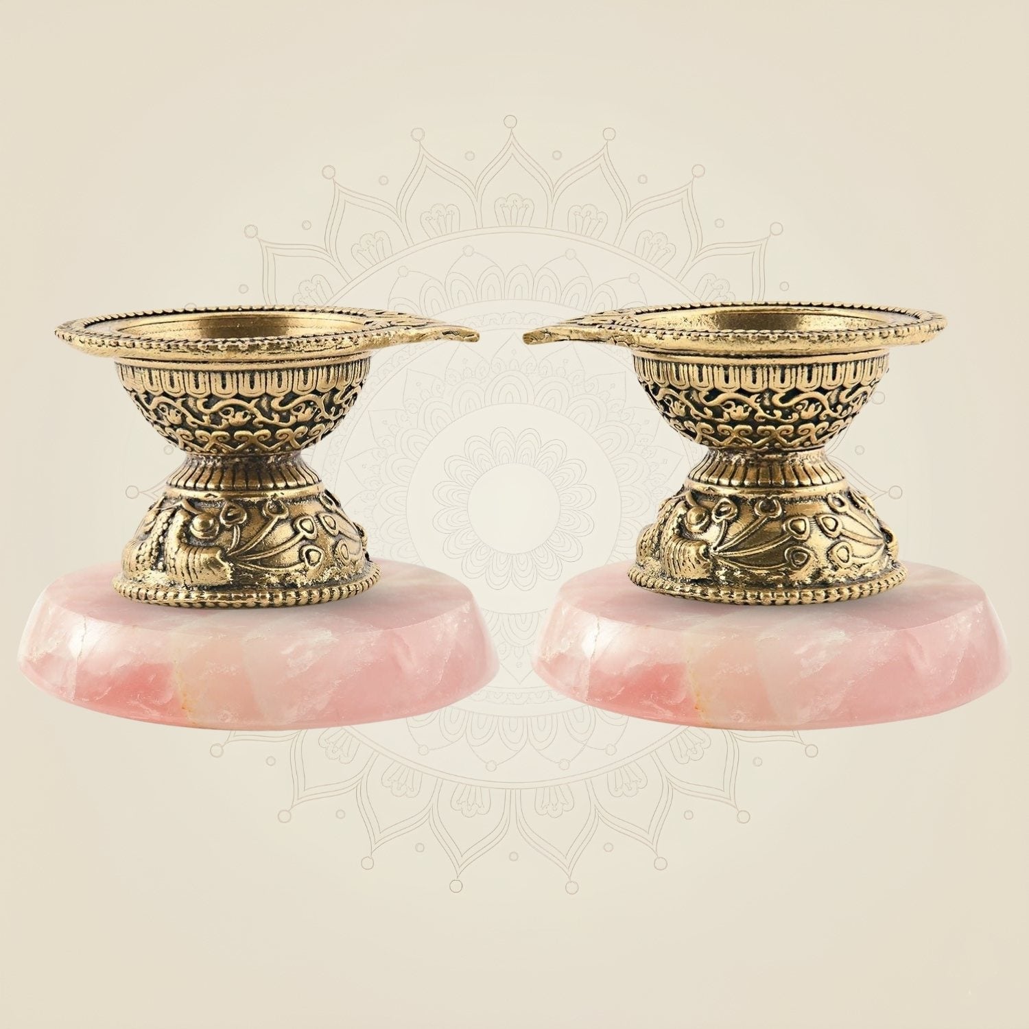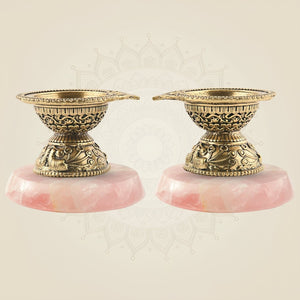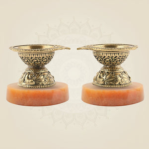 These Brass Mini Diyas, each 1.25 inches in size, are meticulously crafted traditional oil lamps designed for mandir use and festive décor. Their robust brass construction offers durability and a classic shine, while their compact design allows for versatile placement. Ideal for enhancing spiritual rituals or creating an inviting atmosphere during celebrations, this pair brings authentic charm and a warm glow to any sacred or decorative setting.