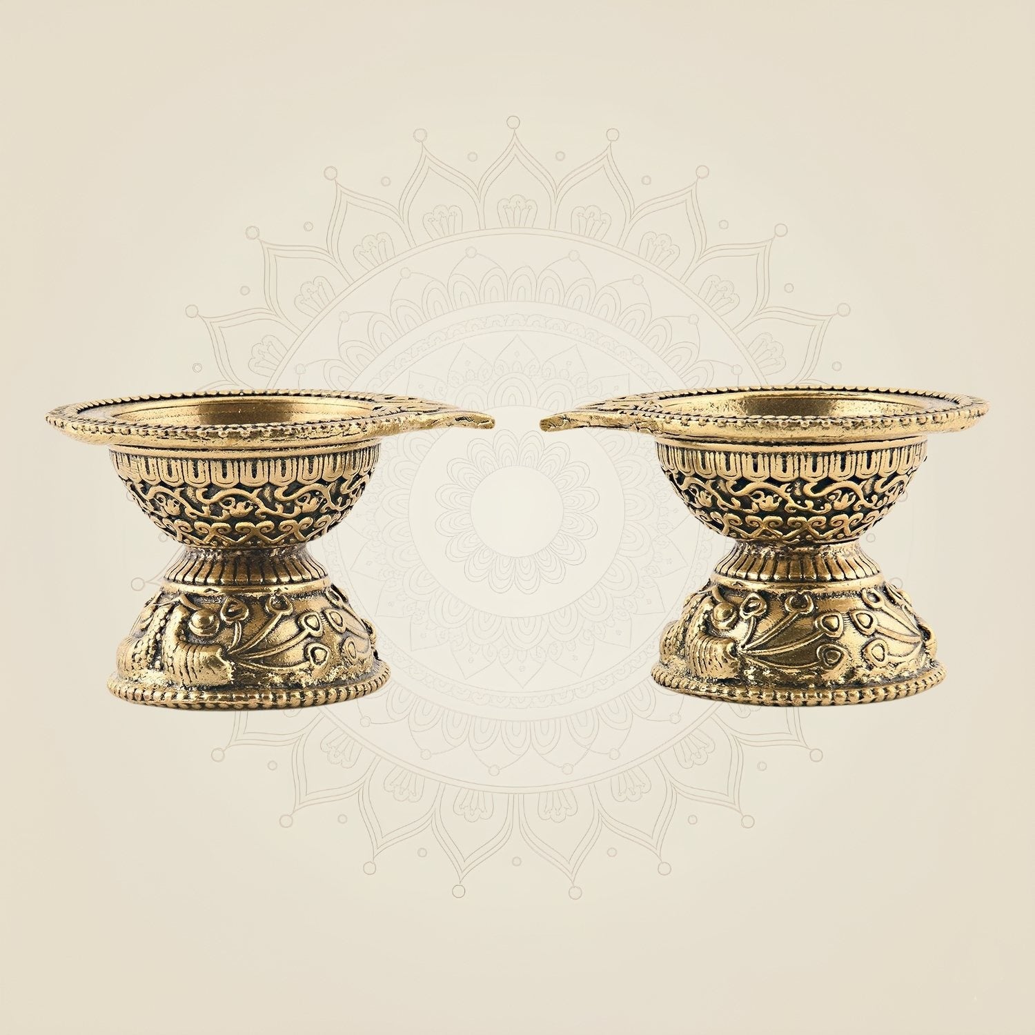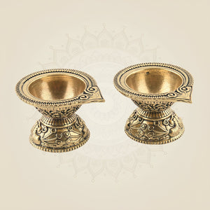 Brass Mini Diya Pair 1.25" – Traditional Oil Lamps for Mandir & Festive Décor