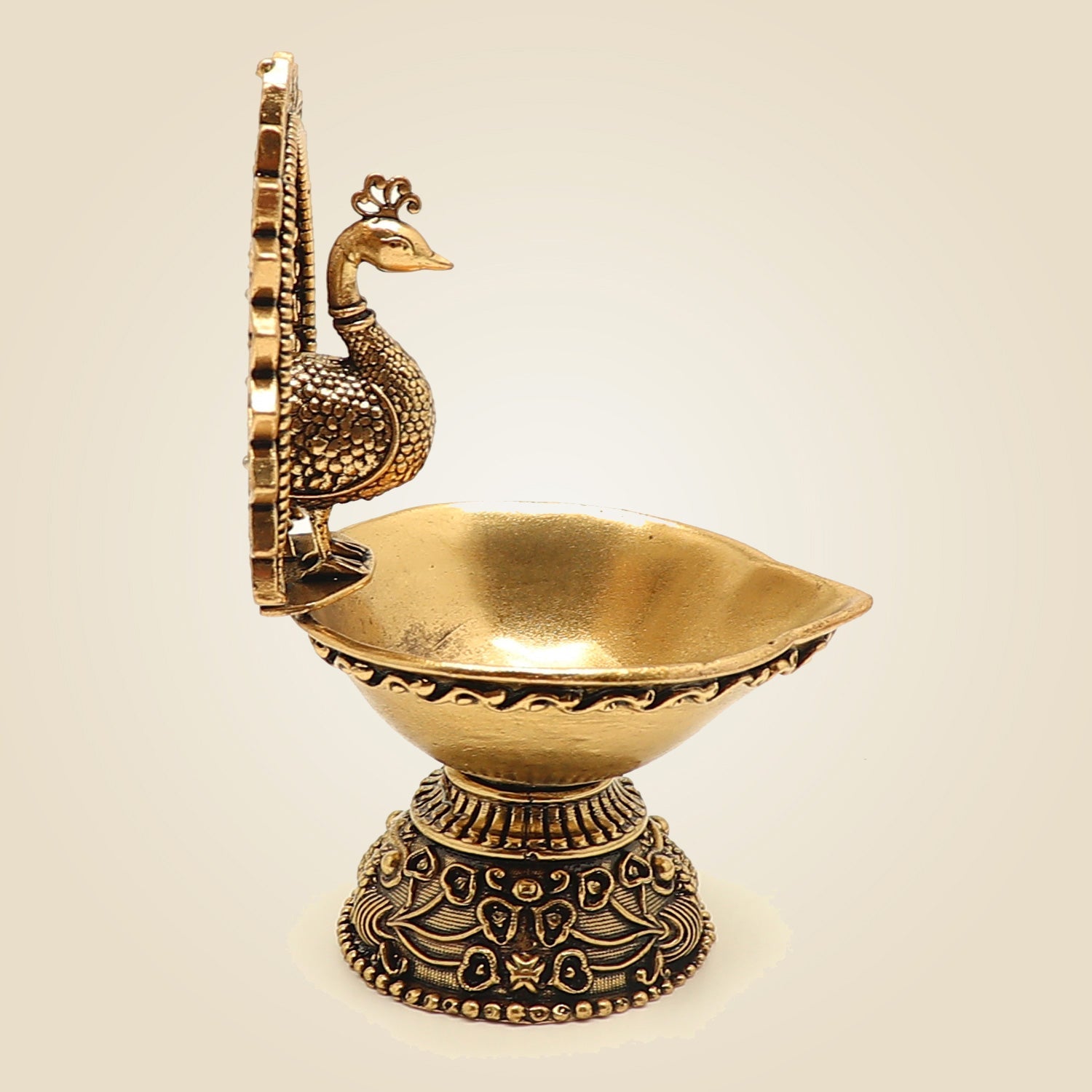 Brass Peacock Diya 4"– Handcrafted Oil Lamp for Hindu Rituals and Festive Décor