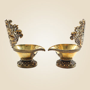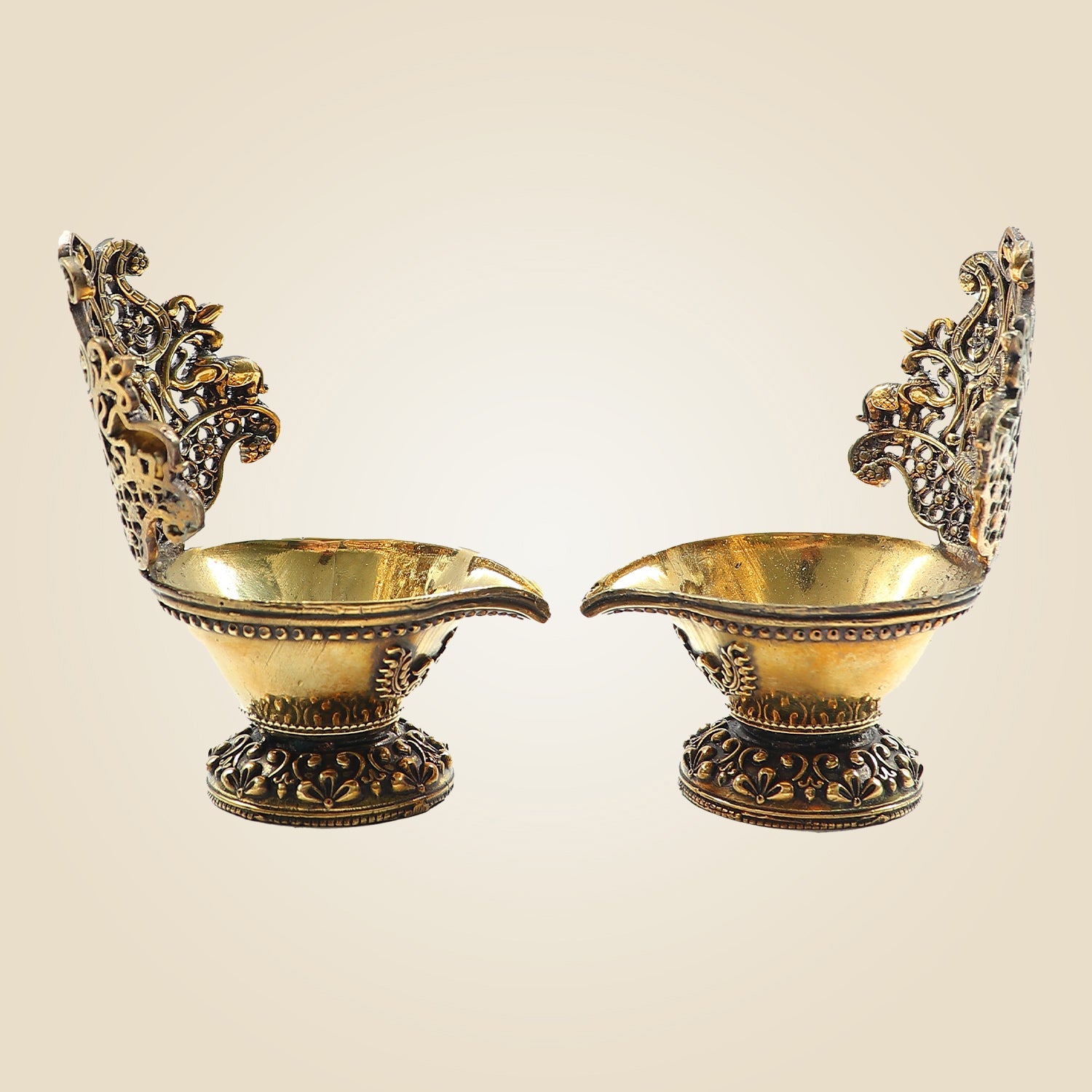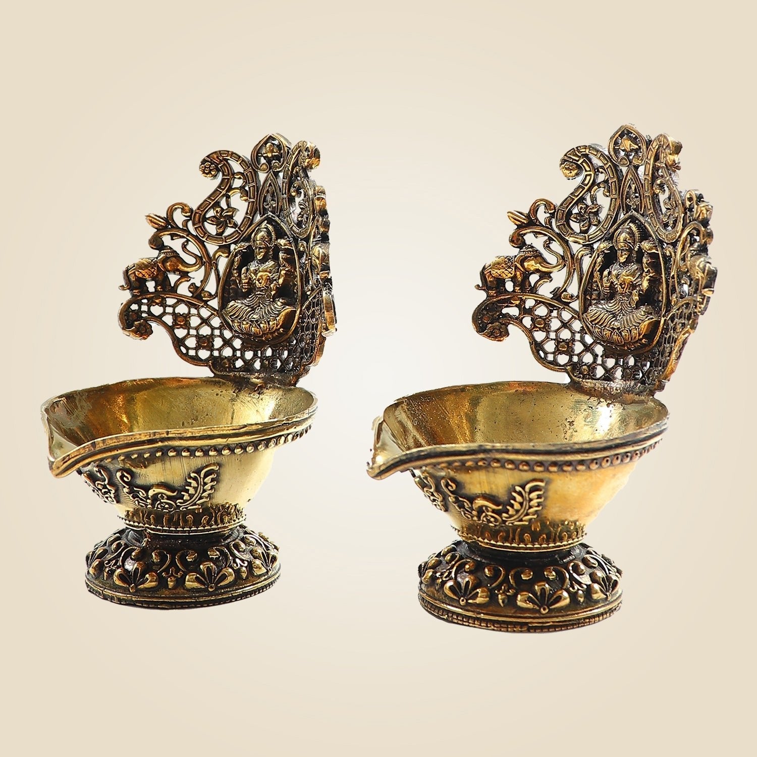 Handcrafted Brass Lakshmi Diya – Traditional Ritual Oil Lamp for Puja & Home Décor - 3.25"