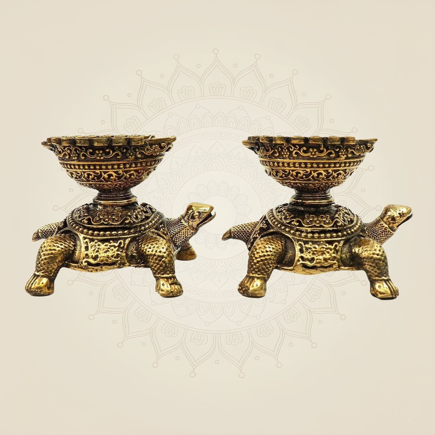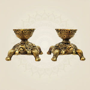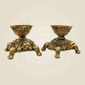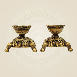 Pair of Brass Turtle Diyas 2.5" | Traditional Tortoise Oil Lamps for Temple & Home