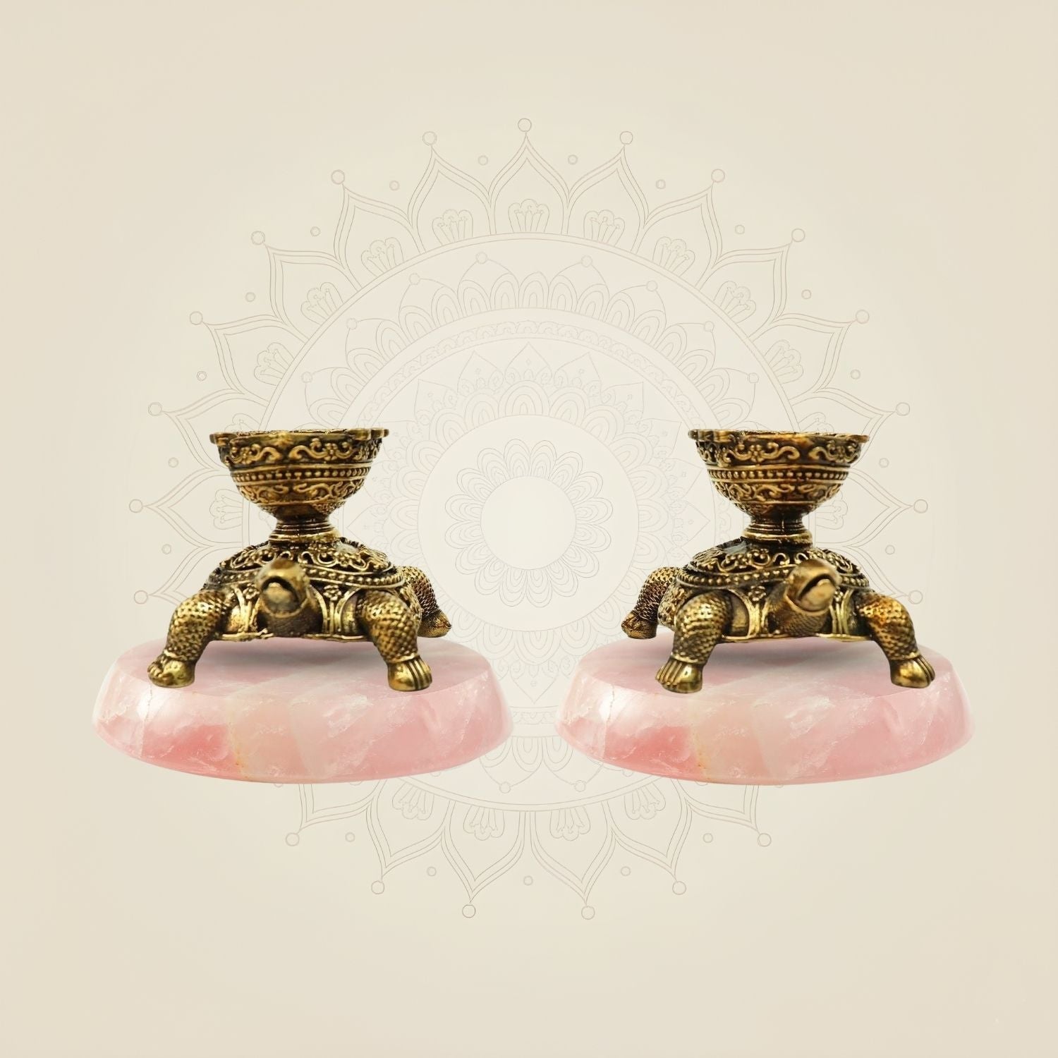 Elevate your sacred space with this pair of brass turtle diyas, each measuring 2.5 inches. Crafted in the traditional tortoise shape, these oil lamps blend cultural symbolism with functional design, making them ideal for temple rituals or home altars. The...