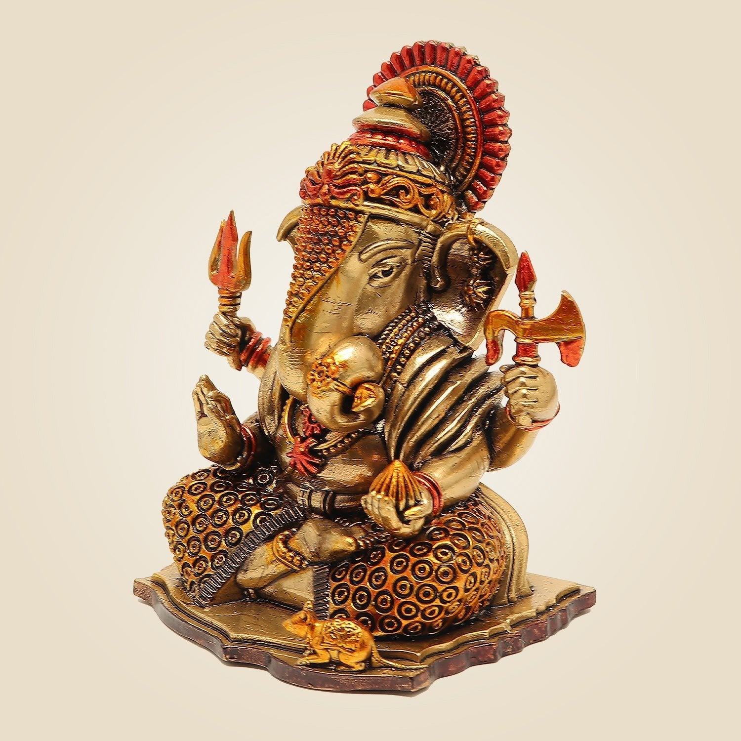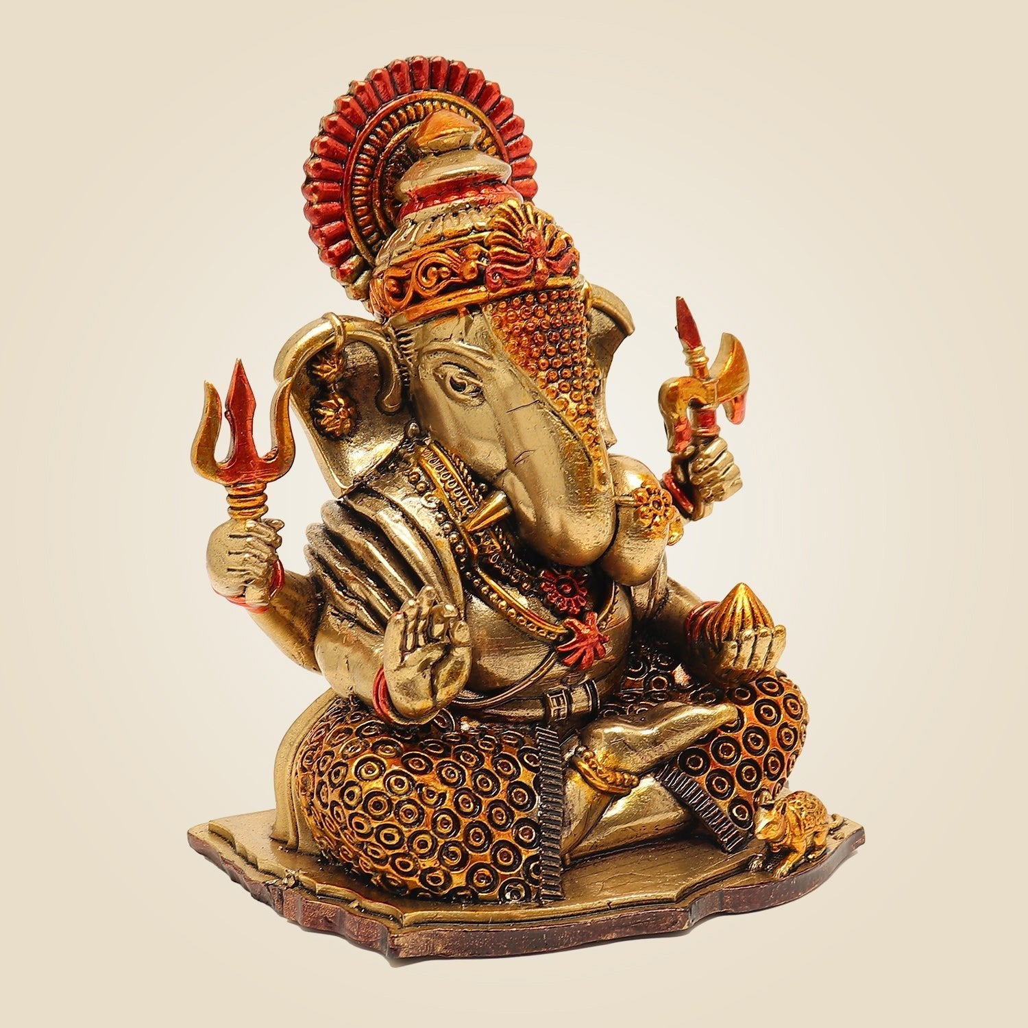 5″ Brass Dagduseth Ganesha Idol – Superfine Intricate Handcrafted Statue