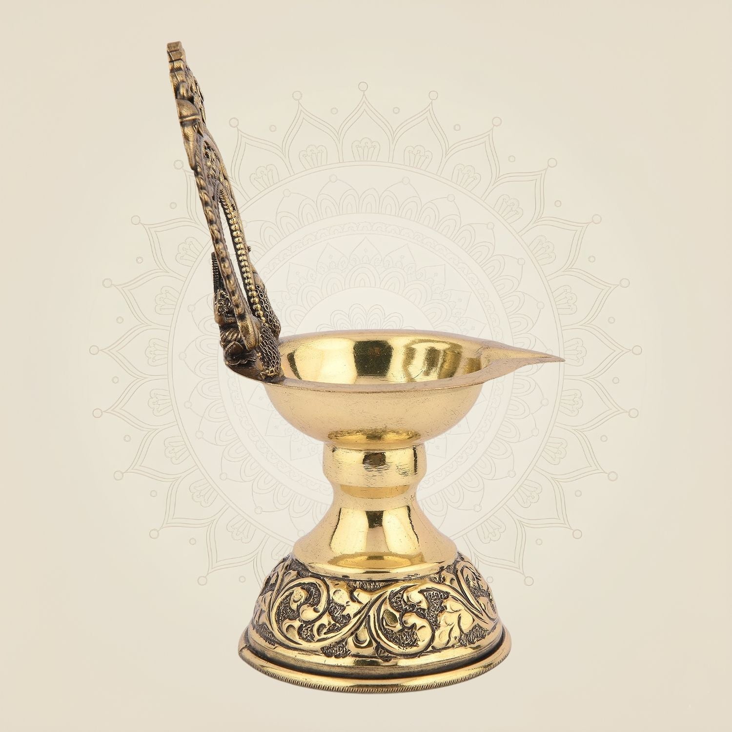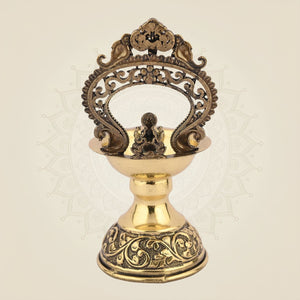 Crafted with precision, this 5.5-inch brass Lakshmi Diya symbolizes prosperity and divinity. Ideal for traditional pooja rituals or elegant decor, its handcrafted design ensures durability and a refined aesthetic. The diya’s polished brass not only enhances its spiritual significance but also offers long-lasting shine, making it a timeless addition to your sacred space.