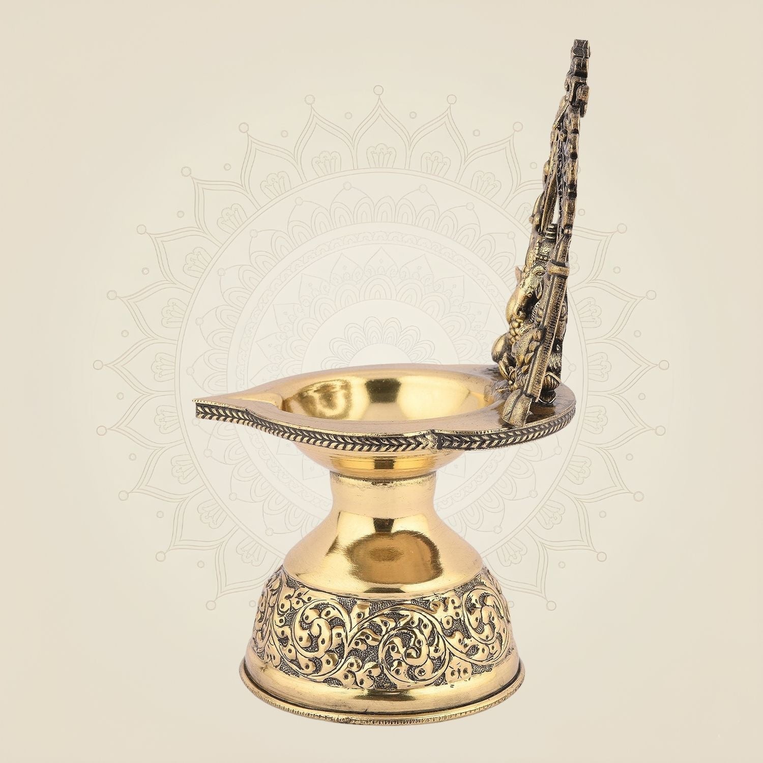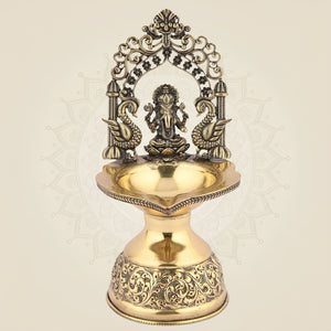 Ganpati Darbar Brass Diya Artisan – 7" Lightweight Handcrafted Oil Lamp