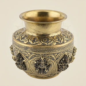 Kalash with Ashtalakshmi - 4.5" Pure Brass Superfine Lightweight Pooja Kalash for Ritual