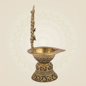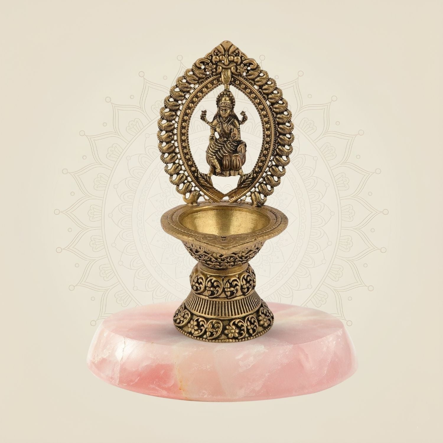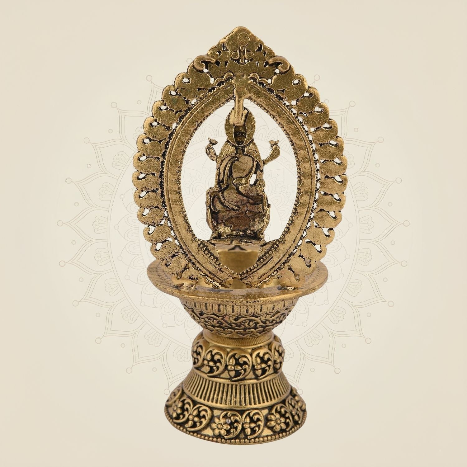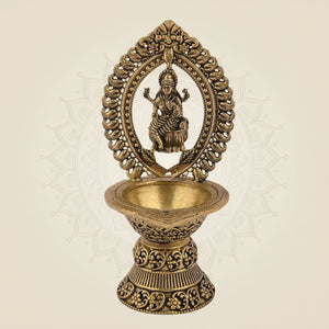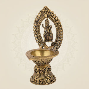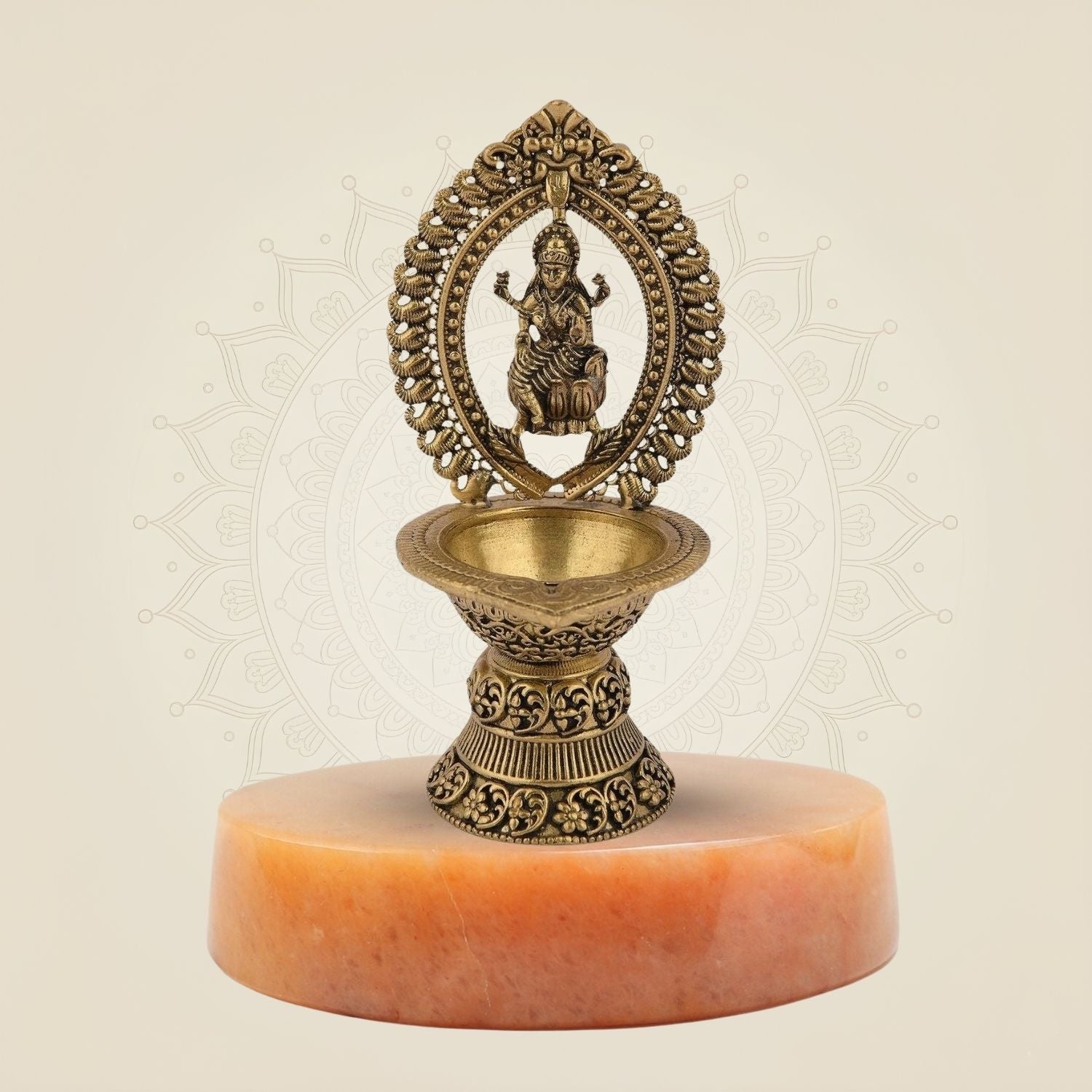 Lakshmi Mata Brass Diya 4.5" Handcrafted Oil Lamp for Pooja, Wealth & Blessings