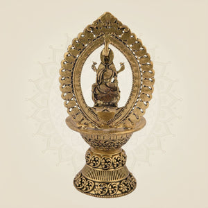 The Lakshmi Mata Brass Diya is a 4.5-inch handcrafted oil lamp, meticulously designed for pooja ceremonies. Made from high-quality brass, it offers durability and a lasting shine, symbolizing prosperity and auspiciousness. This diya provides a steady flame that enhances spiritual rituals, inviting wealth and blessings into your home. Ideal for traditional worship, it blends expert craftsmanship with sacred significance, making it a thoughtful addition to your devotional practices.