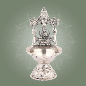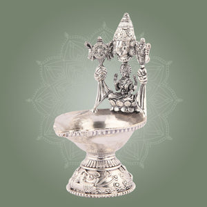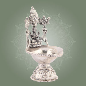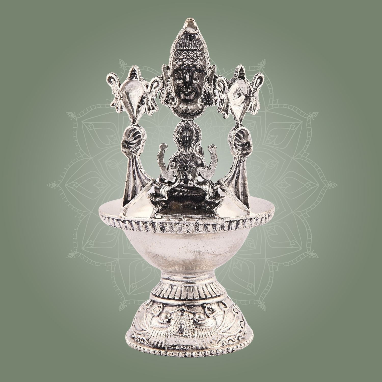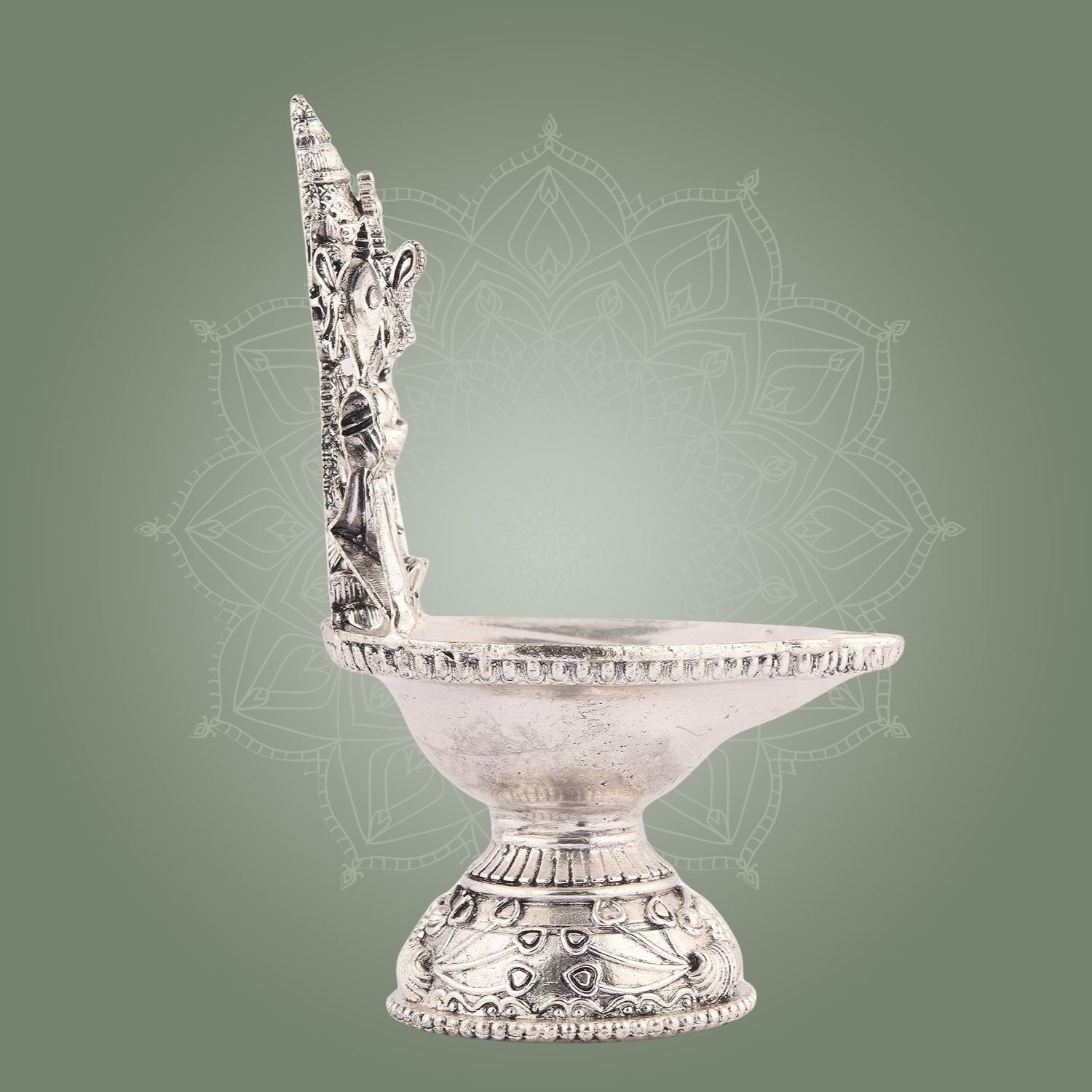 Laxmi Balaji Diya 5.5" – Handcrafted Silver Finish Brass Lamp for Pooja Decor