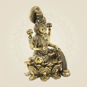 Laxmi Maa on Lotus Idol- 4.25" Handcrafted Brass Wealth Statue