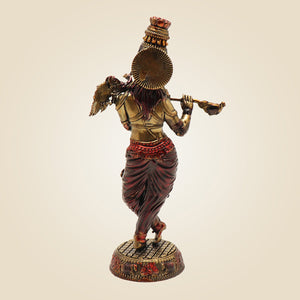 Lord Krishna with Peacock Idol 6.5" Pure Brass Statue Divine Masterpiece