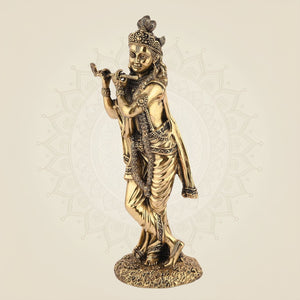 Elevate the vibes of your home Temple with the stunning Idol of standing Lord Krishna with his iconic flute pose. This idol is 10 inches in height and is perfect for everyday Pooja rituals or even for special festivals like Janmashtami. Additionally, it will also make a very elegant and royal centerpiece for your home decor.