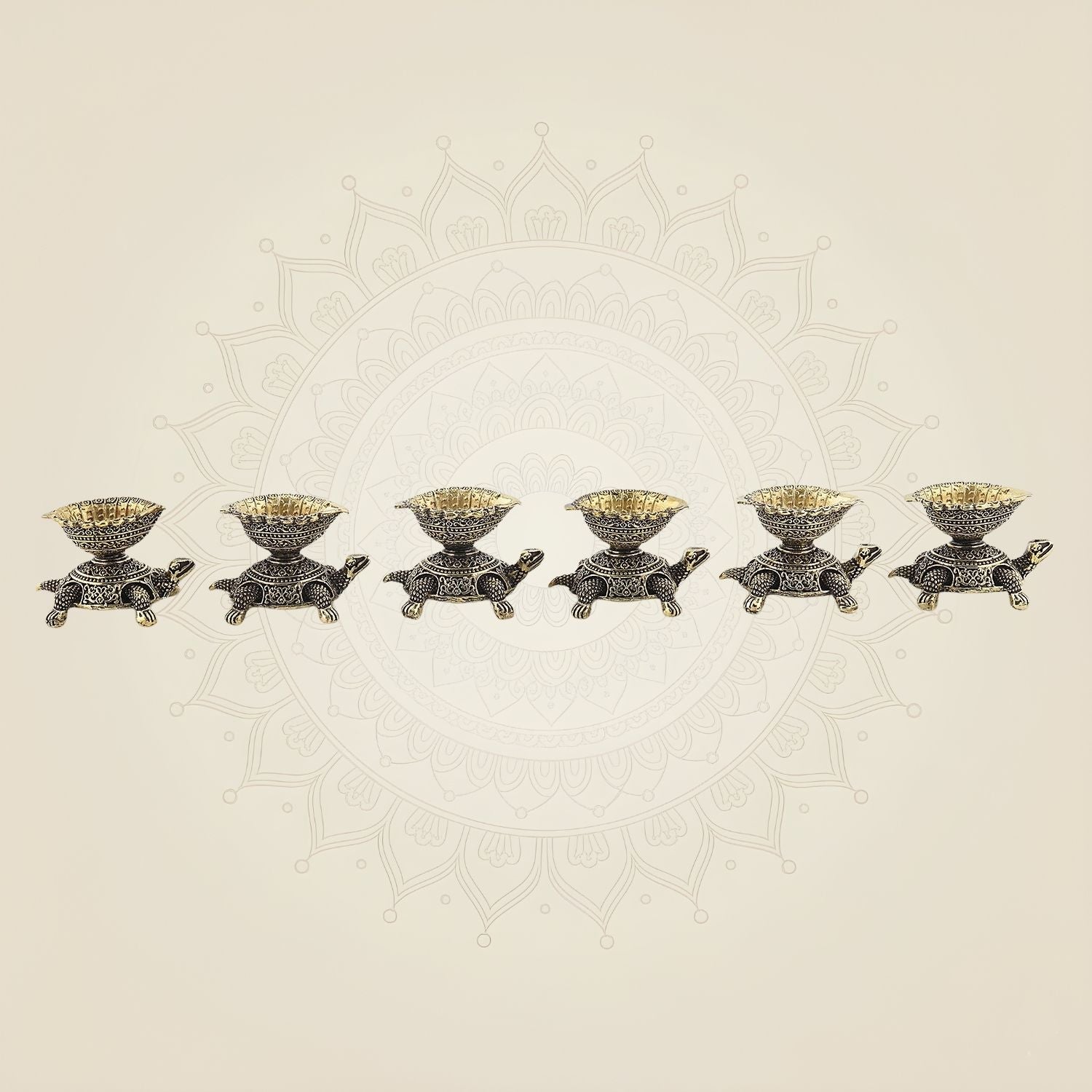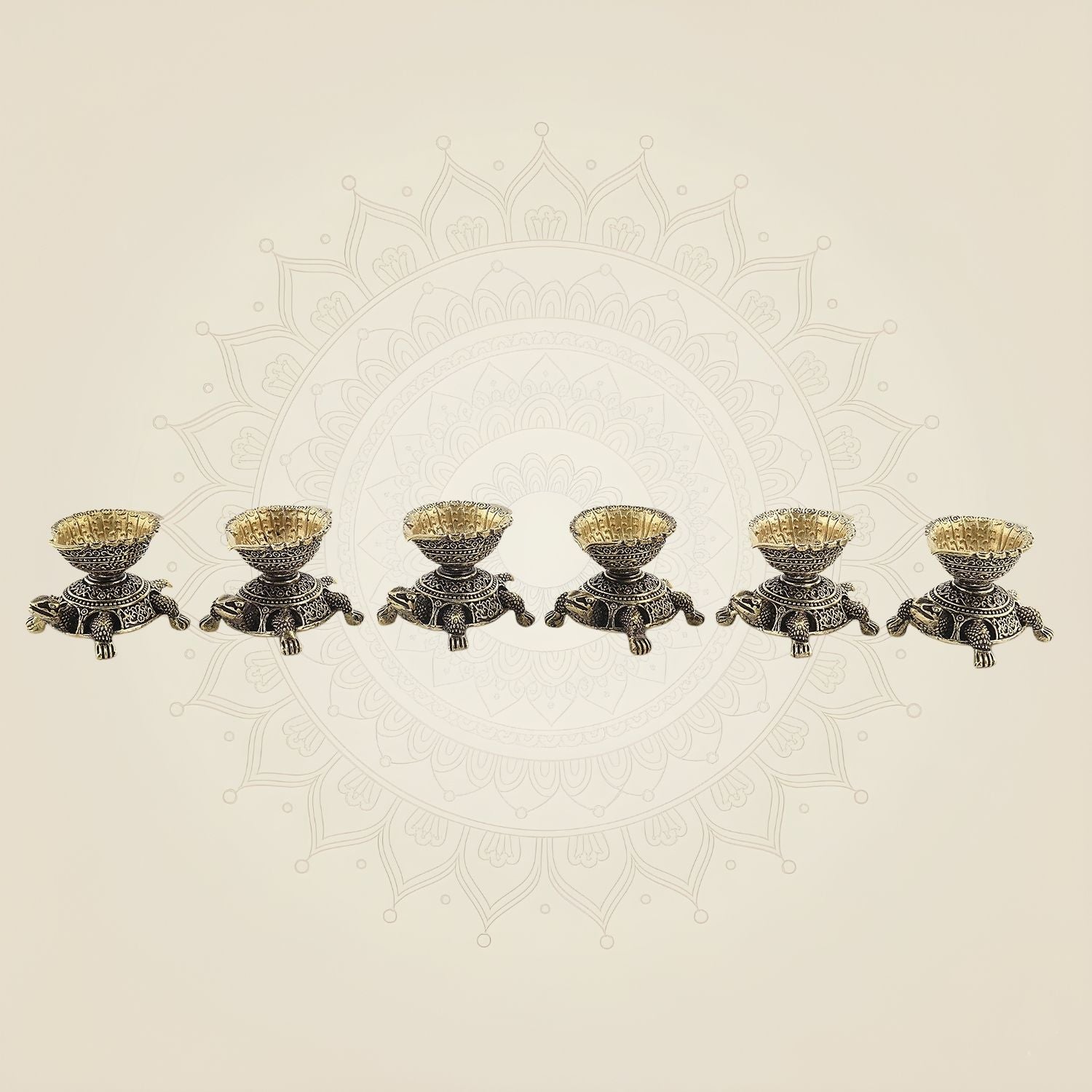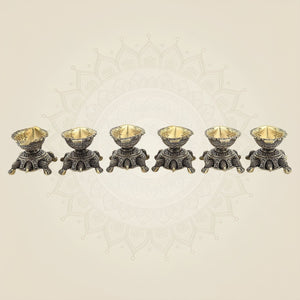 Tortoise Brass Oil Lamps 1.5" (Set of 6) – Diya Set for Pooja & Decor