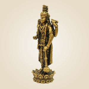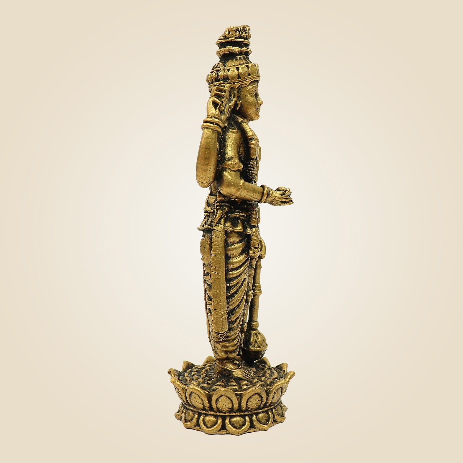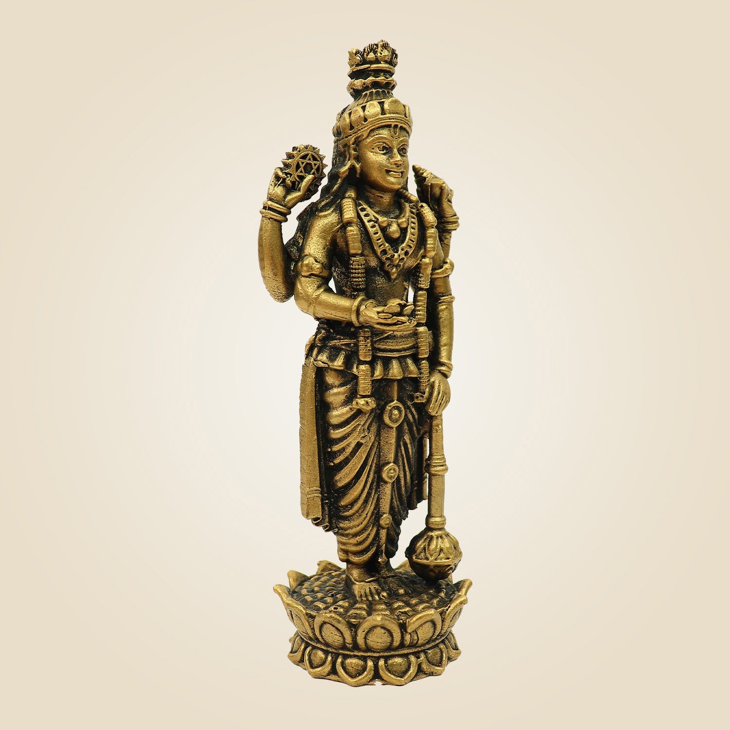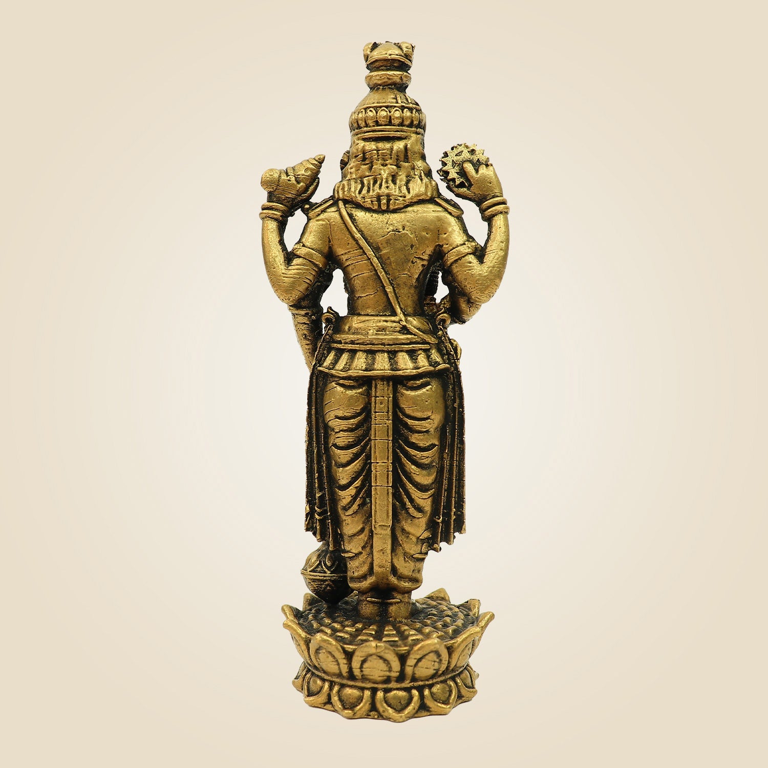 5" Bronze Lord Vishnu Idol – Standing on Lotus for Pooja Decor