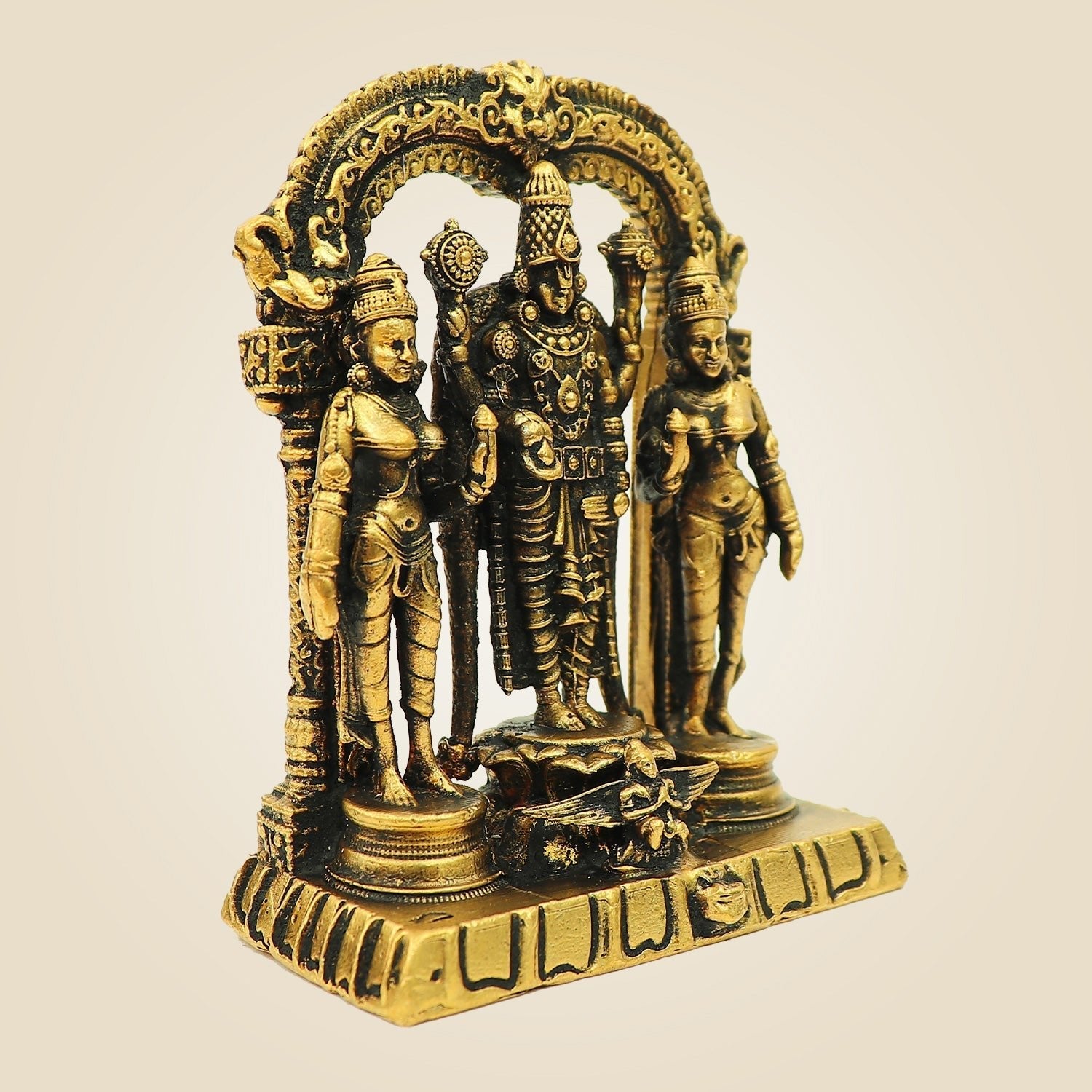 Bronze Tirupati Balaji Idol 2.75"– Venkateswara with Sridevi Bhudevi Statue