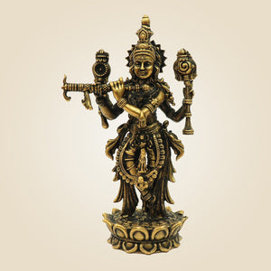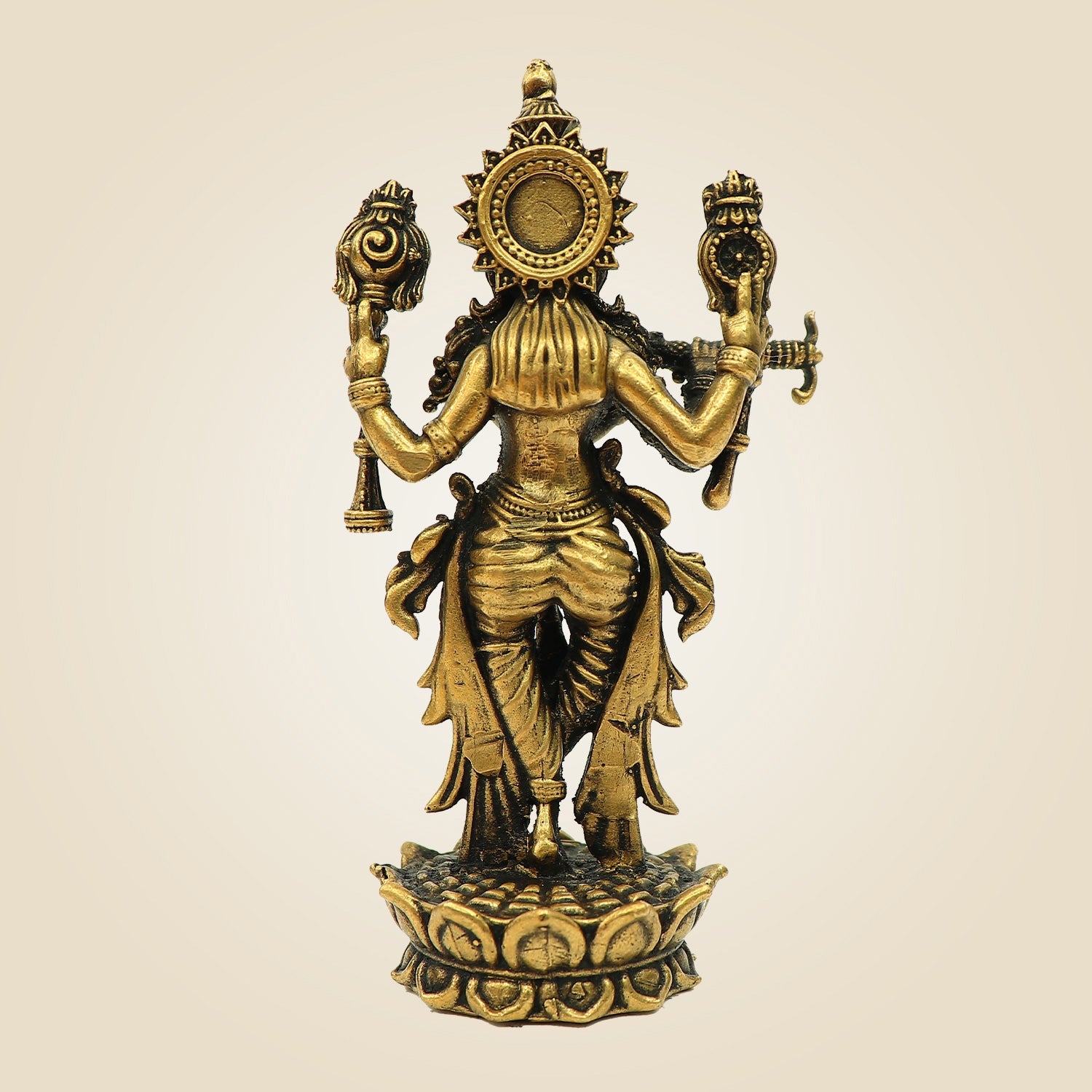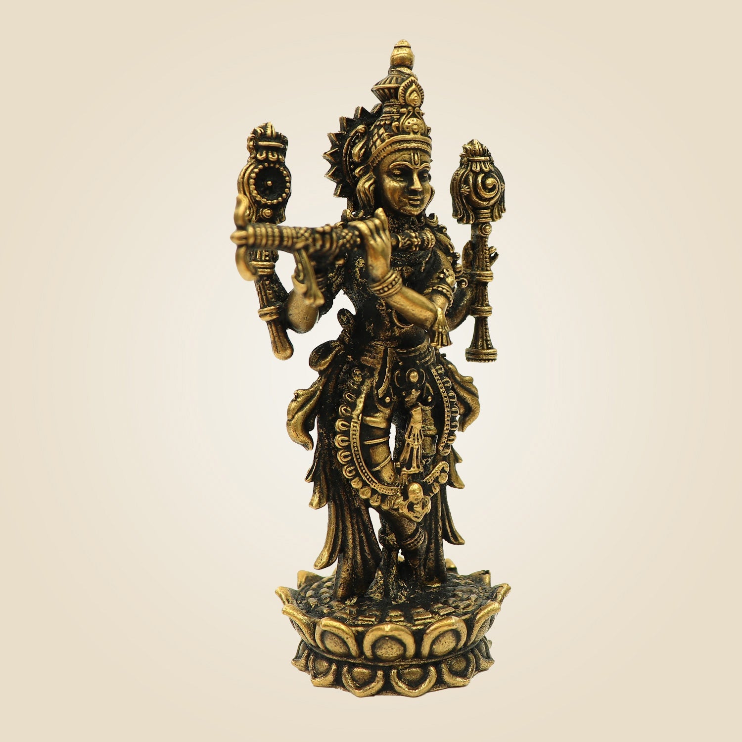 Handcrafted Bronze Krishna Idol – Flute Playing Murti for Mandir - 4"
