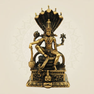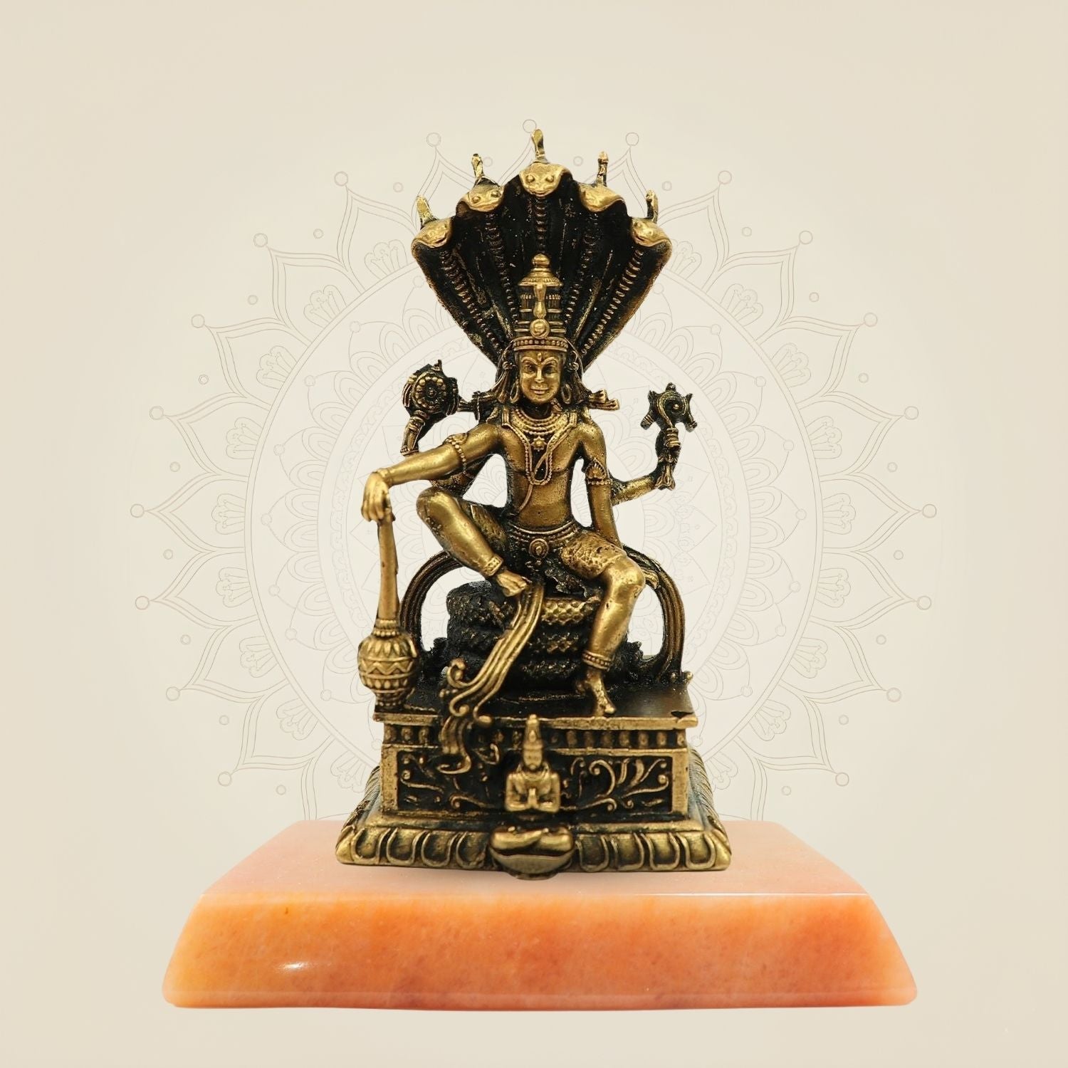 Lord Vishnu Bronze Idol on Sheshnag Throne 3.30" - Unique Statue