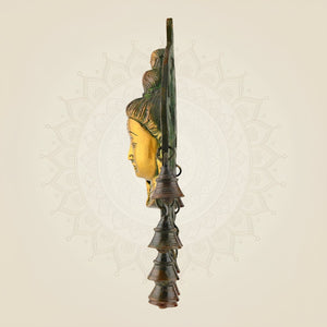 Crafted from high-quality brass, this 10.75″ Om Shiva wall hanging exquisitely features Shiva accompanied by Naag and the flowing Ganga river, symbolizing divine protection and purity. The piece includes delicately suspended bells that emit a gentle, auspicious sound when moved, enhancing its spiritual ambiance. Ideal for elevating your meditation space or sacred altar, this wall hanging combines traditional symbolism with fine craftsmanship to enrich your environment with serenity and sacred energy.