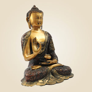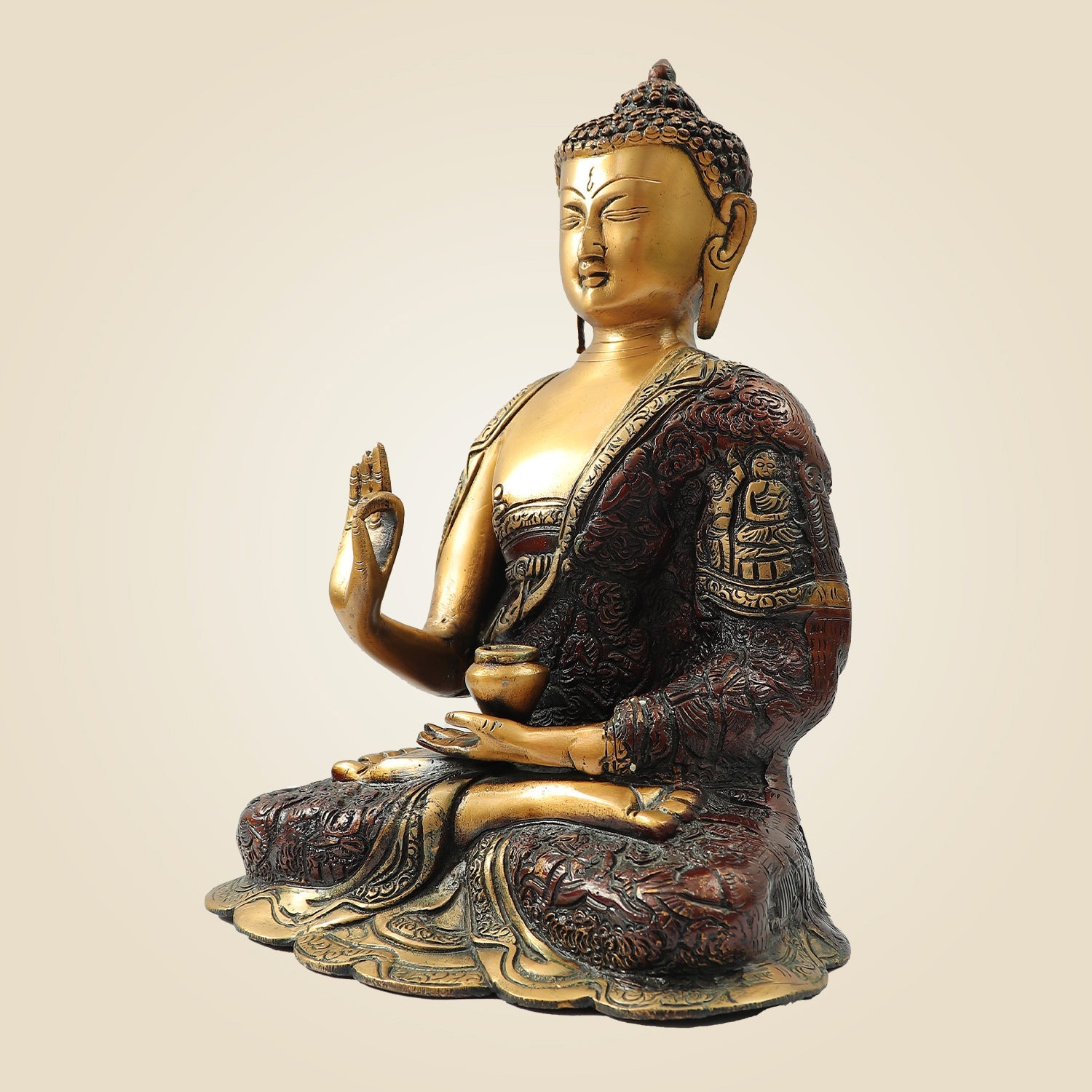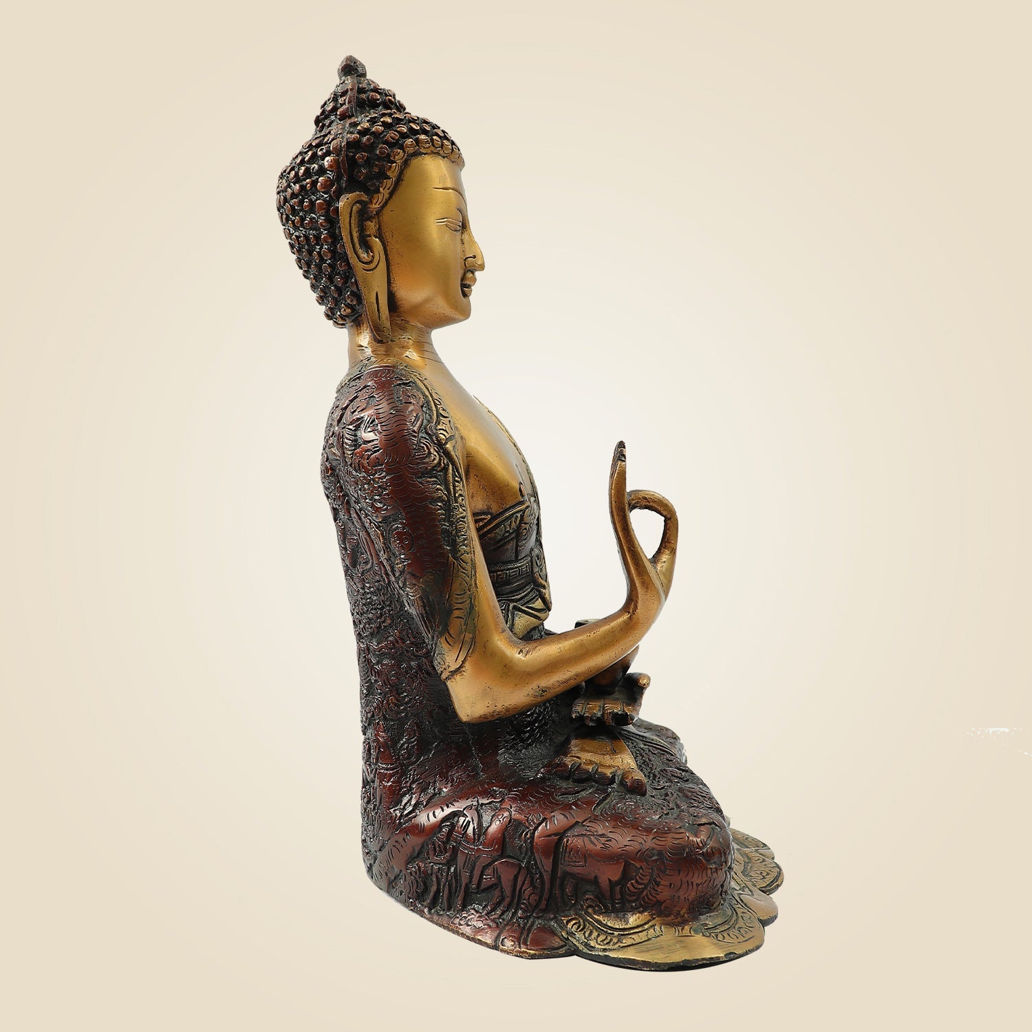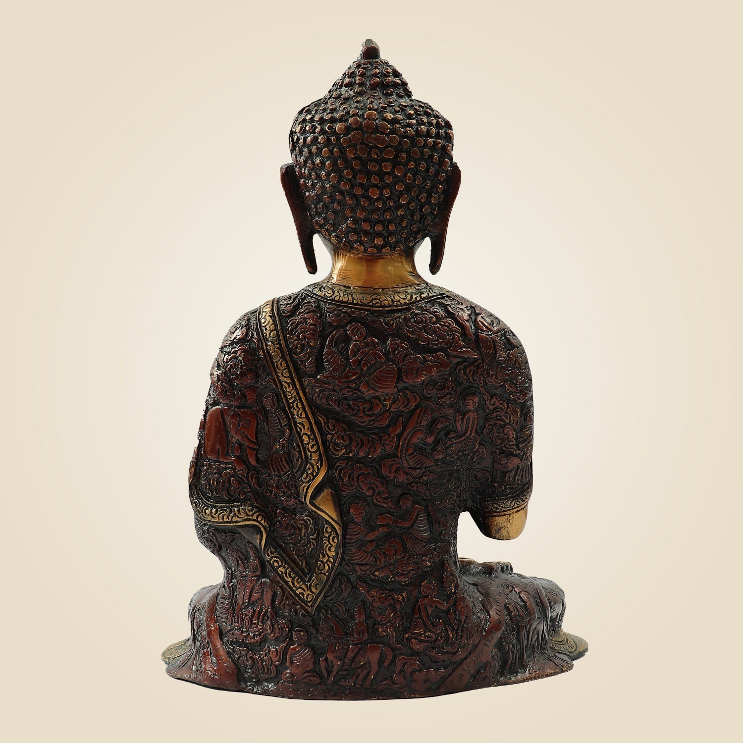 Brass Tibetan Medicine Buddha Idol – Unique Healing Spiritual Statue 11.5"