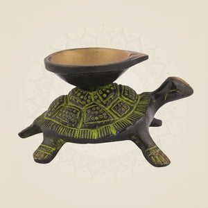 Crafted from antique brass, this 2-inch Tortoise Oil Lamp offers a traditional element with rich cultural significance, ideal for Vastu compliance and pooja decor. Its compact size fits seamlessly into sacred spaces while symbolizing longevity and prosperity. Perfect for enhancing spiritual rituals and inviting positive energy into your home or altar.