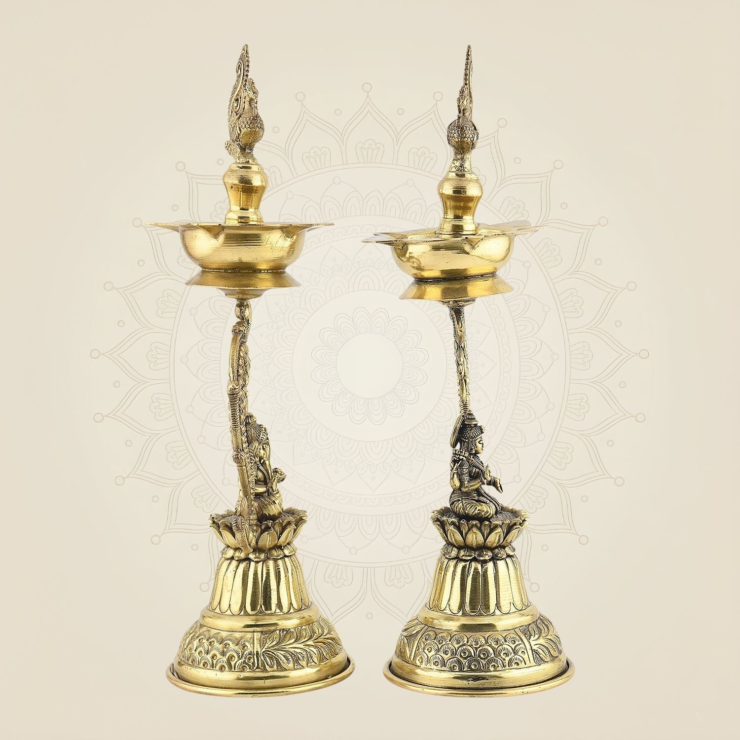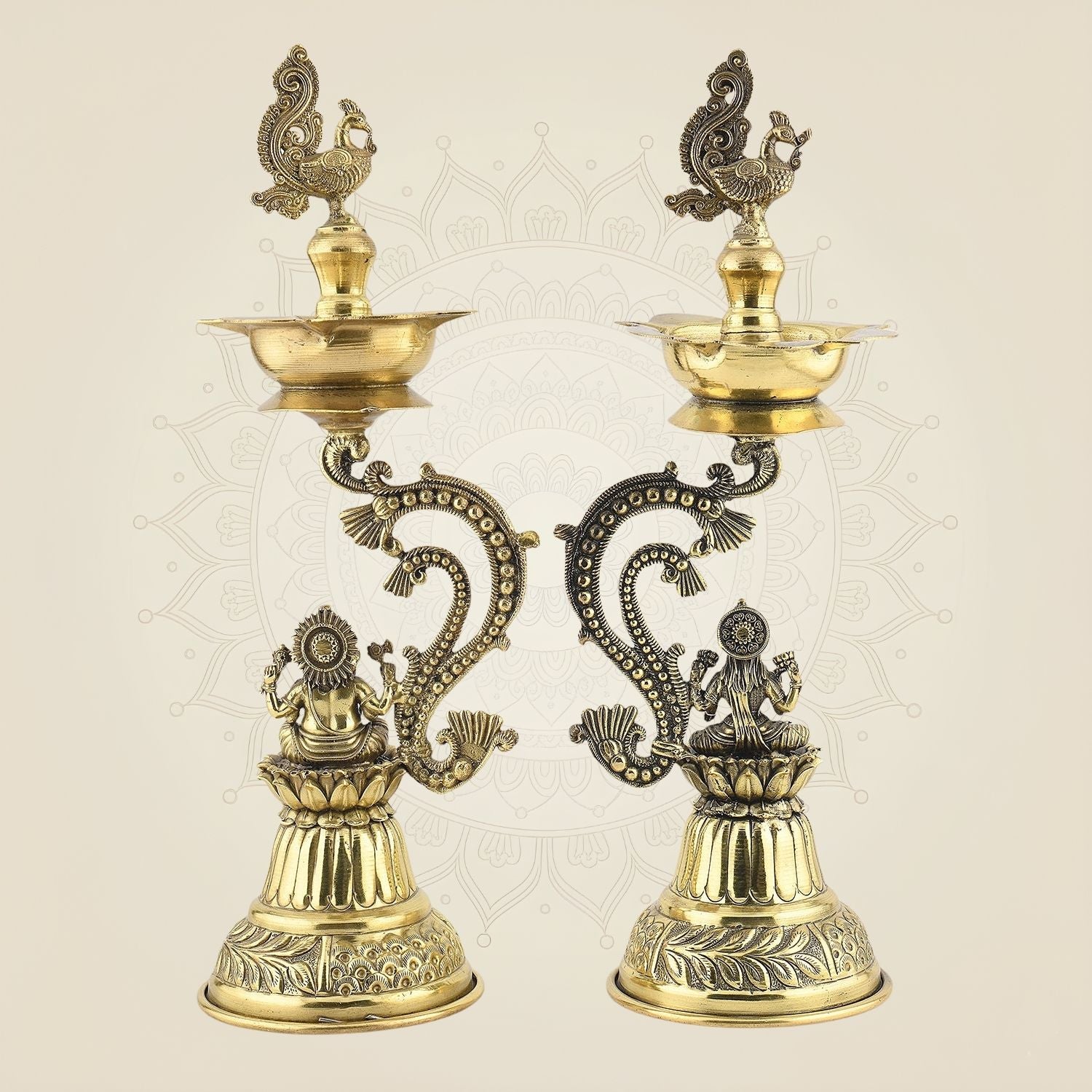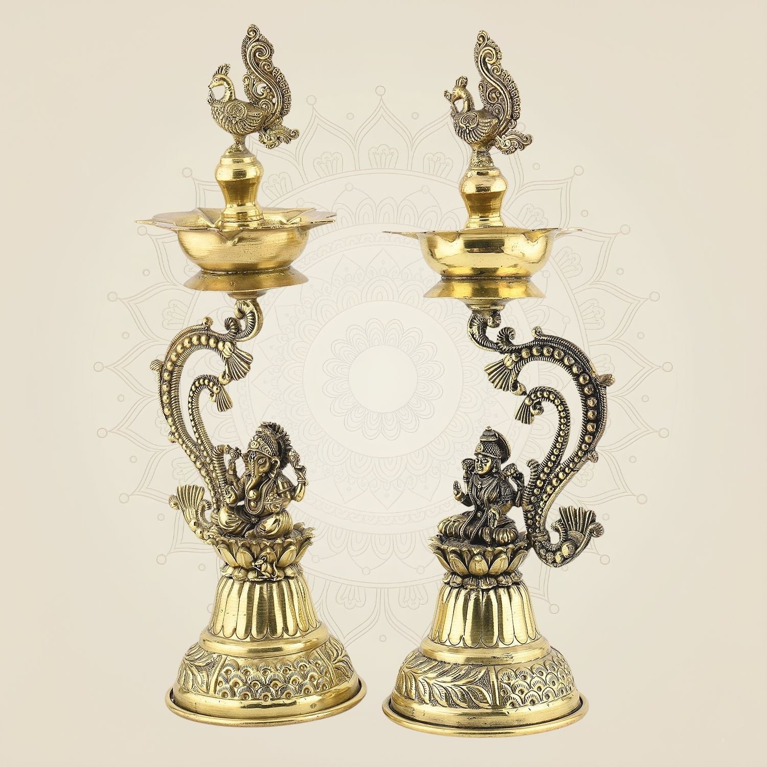 Laxmi Ganesh Brass Diya Stand – 13" Traditional Pooja Lamp for Spiritual Decor