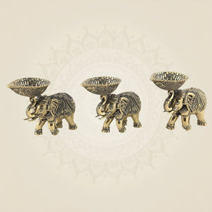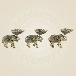 Set of 3 Elephant Diya 3.5" – Brass Oil Lamps on Trunk