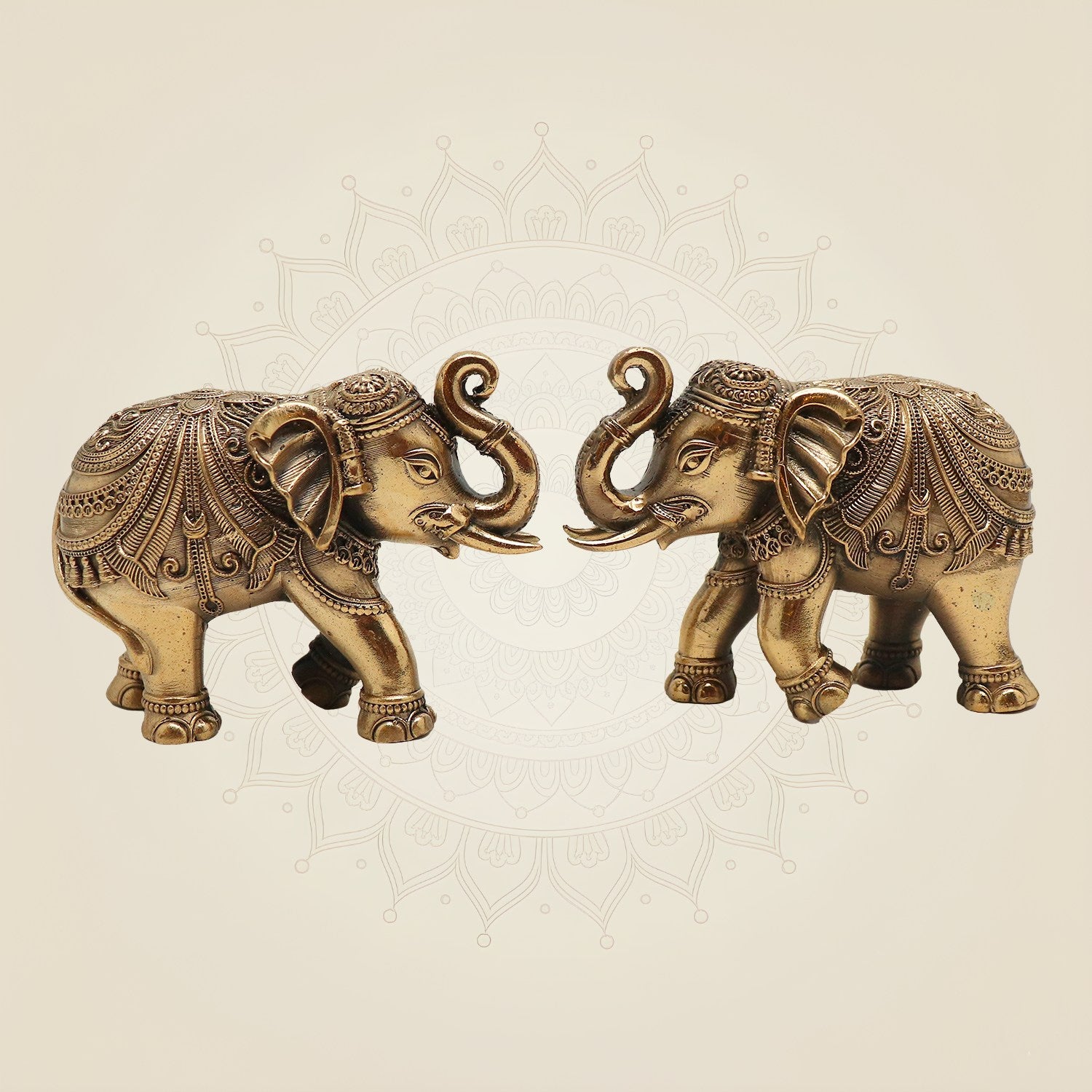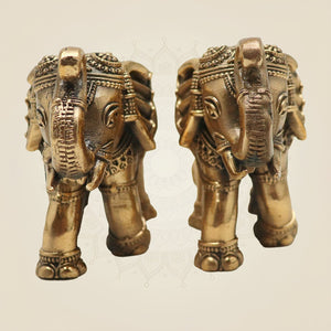Brass Mini Elephant Pair 3" Artisan – Handcrafted Decor & Vastu Showpiece