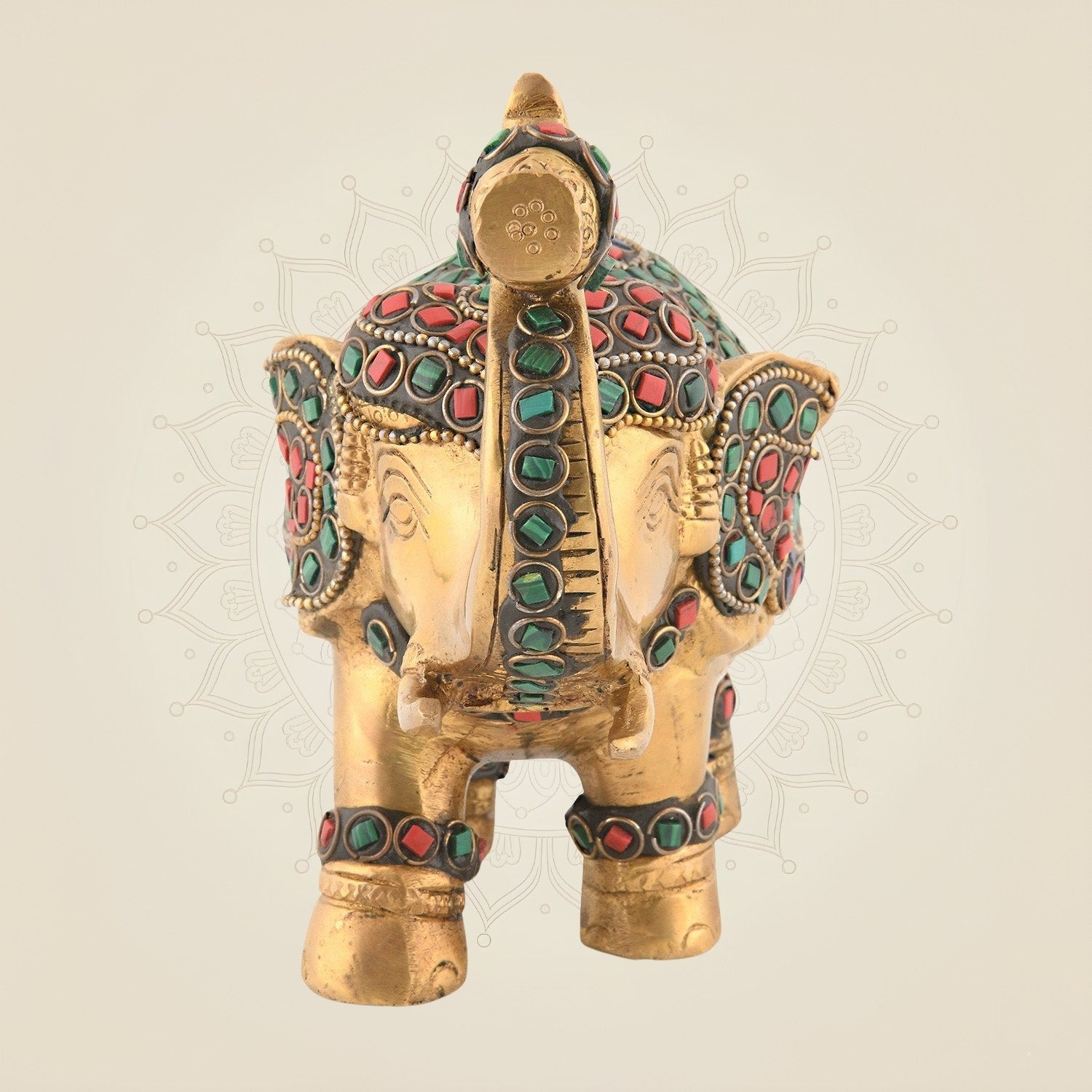 Gemstone Work Brass Elephant 5.5" – Handcrafted Ethnic Indian Decor Showpiece