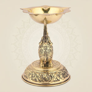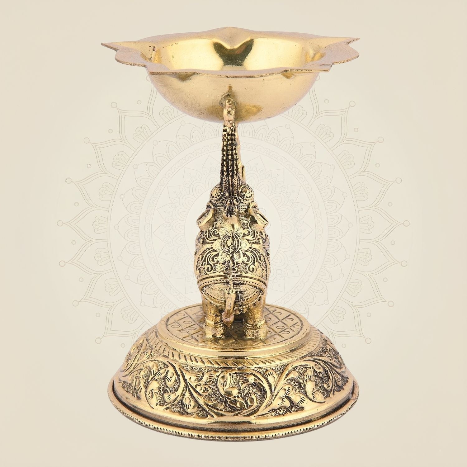 Majestic Brass Elephant Lamp– 4.75" Handcrafted Oil Diya for Festive & Decor