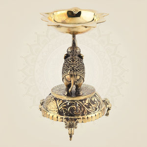 Majestic Elephant Brass Lamp– 5.5" Traditional Pooja Diya for Home & Festive Decor