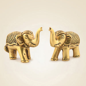 Enhance your decor with this exquisite set of two handcrafted brass elephant figurines, each measuring 2.25 inches. Meticulously crafted, these showpieces bring an elegant and timeless charm to any space. Their detailed design captures the majesty of elephants, symbolizing strength and wisdom, making them a refined addition to offices, living rooms, or display cabinets. Durable and artfully finished, they provide a subtle yet impactful decorative accent for discerning collectors and interior connoisseurs.
