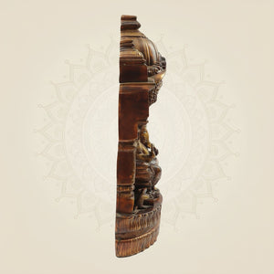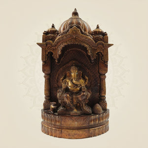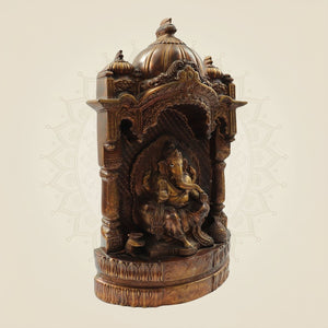 16.5" Seated Brass Ganesh Idol Big Size in Carved Mandap Design | Divine Home Decor