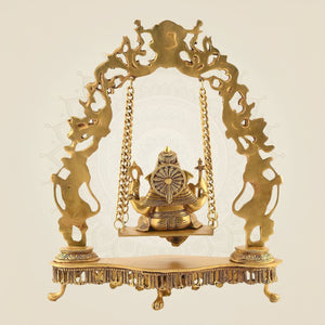 18" Ganesha on Jhula Brass Idol : Handcrafted Swing Statue